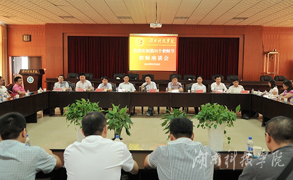本网9月10日讯 (摄影 何帅文)“大家辛苦了!我代表学校感谢你们!”校长曾宝成在第31个教师节来临之际,召集全体在家校领导与广大一线教师代表亲切座谈,与大家共同庆祝节日,在全校崇尚尊师重教优良传统。