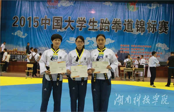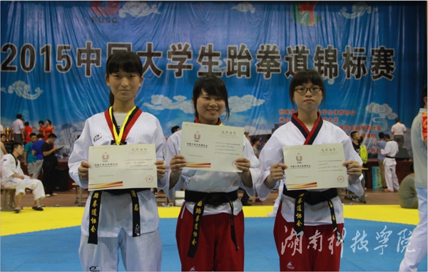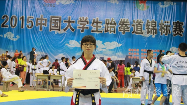 本次比赛来自北京、天津、上海等全国124所高校共1300余名选手角逐竞技、品势两个大项共16个级别的冠军。vwin德赢参赛运动员在个人品势和团体品势比赛中获奖。其中,孙琳获女子甲组个人品势第五名;孙琳、潘思和陶瑞雪获女子甲组团体品势第五名并获总分第八名;黄欣、李园、梁水英获女子乙组团体品势第五名并获总分第五名;体育学院盛靖同学获2015年中国大学生跆拳道锦标赛“最佳技术奖”;张修昌老师获“优秀教练员奖”。