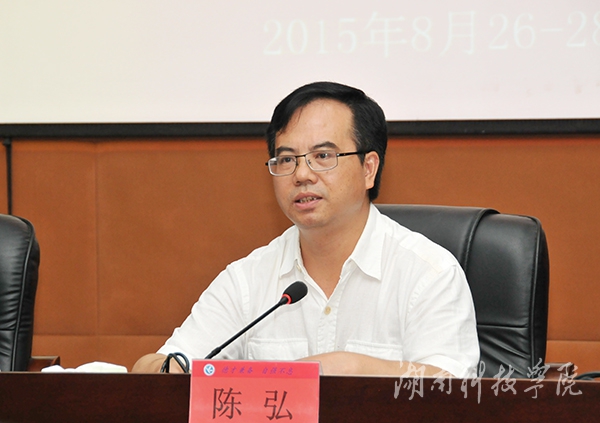 陈弘认为,当前大家要正确理解“转型发展”、“应用型”、“地方性”、“特色”等概念。他指出,转型发展,归根结底是要切实落实到“四个转到”上来:把办学思路真正转到服务地方经济社会发展上来,转到产教融合、校企合作上来,转到培养应用型技术人才上来,转到增强学生就业创业能力上来。通过改革人才培养方案、科学设置课程体系、调整师资队伍结构、创新教学组织方式、转变教育管理方式等举措,以转型发展为契机,促进学校的事业发展。他强调,要坚持面向基层,服务社会,加强与行业、企业的合作,为地方经济社会发展培养应用型人才。陈弘表示,“有特色,其实就是依托地方,融入地方,走差异化、个性化发展道路”,要立足地方,坚持差异化发展,从永州和湖南历史文化资源、经济社会发展的需求出发,优化学科专业布局,以“人无我有,拾遗补缺”的原则,明确学科方向,坚持做好与永州历史文化和地方经济建设“两个结合”,彰显学校办学特色,实现学校跨越式发展。