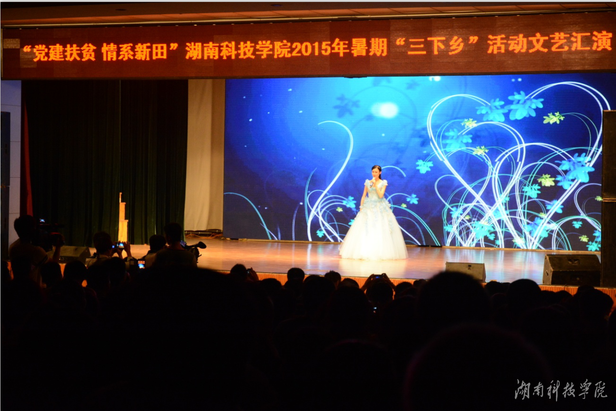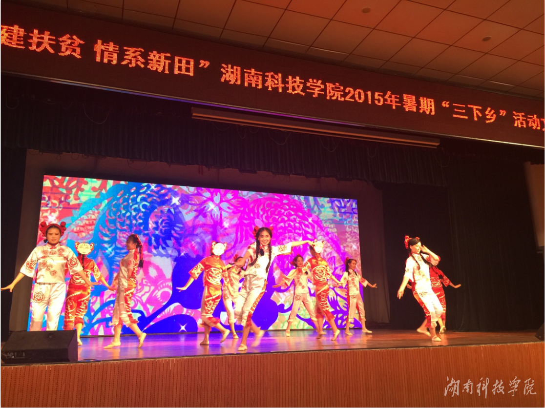 本网讯(通讯员 刘华剑)7月10日晚,“党建扶贫、情系新田”vwin德赢ac米兰官方网2015年暑期三下乡文艺汇演在新田县一中礼堂活力上演,来自音乐与舞蹈学院和体育学院的同学们为新田人民带来了一场青春与梦想的文艺盛宴,受到热烈欢迎,引发良好反响。校长曾宝成、校党委副书记唐艳明、副校长程智开等领导与该县县委书记唐军、县长秦山成等县领导及1500多名观众兴致勃勃地观看了演出。