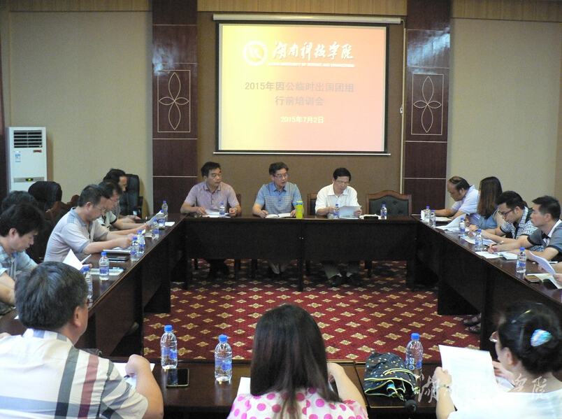 本网讯(国际交流与合作处)7月3日下午,学校在行政办公楼六楼会议室举行因公出国人员行前培训会。今年因公出国各团组团长及成员参加培训会。培训会由副校长宋宏福主持。