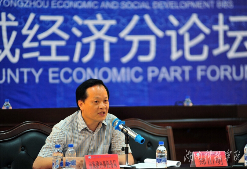 经过一个下午的踊跃发言和热烈讨论,大家就“新常态下永州经济社会发展及县域经济发展的机遇与挑战”、“地方高校如何在地方经济社会文化的发展中发挥智库作用”、“加快永州文化旅游发展的对策与措施”等县域经济发展问题作了深层次探讨。主题发言充满真知灼见,精彩纷呈,体现了领导、专家、学者高度的社会责任意识和紧跟社会时代需要的治学精神。永州市委党校副校长郑文飞强调,加快推进永州市人才建设要从“四个层面”下功夫,即着眼树立人才观念导向、着力推进人才资源开发、着重加快人才机制创新、着手发挥人才集聚效应。市政协研究室主任刘翼平围绕“潇湘城市群建设”的主题,提出潇湘城市群建设存在的主要问题及相关建议。冷水滩区、零陵区、道县的领导分别对永州旅游业的当前情况、优势特色、前景规划等发表自己的看法。人文与社会科学学院院长潘雁飞提出“研究地方文化,助力地方文化创意产业发展”,介绍了永州地域文化的分布特点及在历史中国的重要位置,研究地域文化的路径及其现实的紧迫性和文化创意产业的发展策略。关于永州城市发展定位的思考,经管学院院长李清泉作“以生态城镇化建设为依托,建设美丽幸福永州”的主题发言,分享了永州市城镇化建设的现状、生态城镇化建设存在的主要问题,并提出加快推进永州市生态城镇化建设的建议。