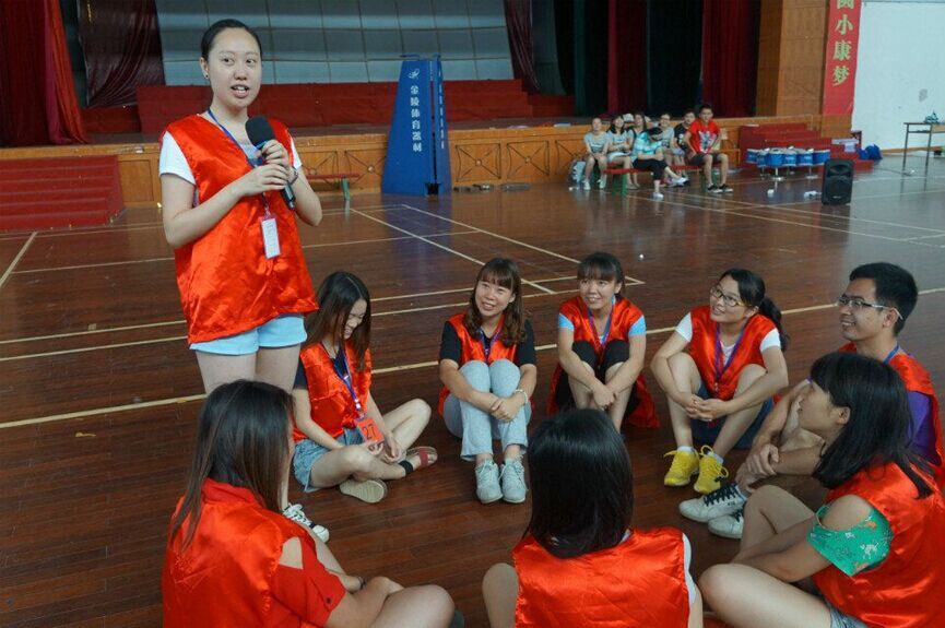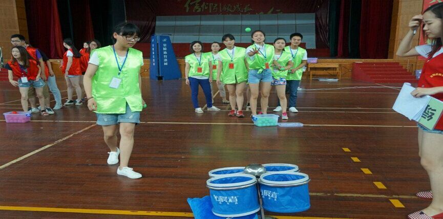 在“定点投球”这一环节中,每组成员接力投球,要求将小球投到篮子中,然后从该篮子里随机取出一张图片,将图片放在核心价值观主题词的相应位置,以检验团队成员对社会主义核心价值观的理解程度。在“合力拼图”环节中,小组成员需共同完成任务书中的各项任务,每个图形由若干张图片组成。各小组成员们团结协作,积极思考,锻炼了逻辑思维能力的同时也使组员之间更加默契。有的小组率先完成任务之后还帮助其他小组完成了拼图,这不仅体现了友谊第一,比赛第二的精神,更让人真真切切地受到了“友善”举动的感染。在每个游戏环节之后,各组都会推选一个代表分享自己的感想以及收获。