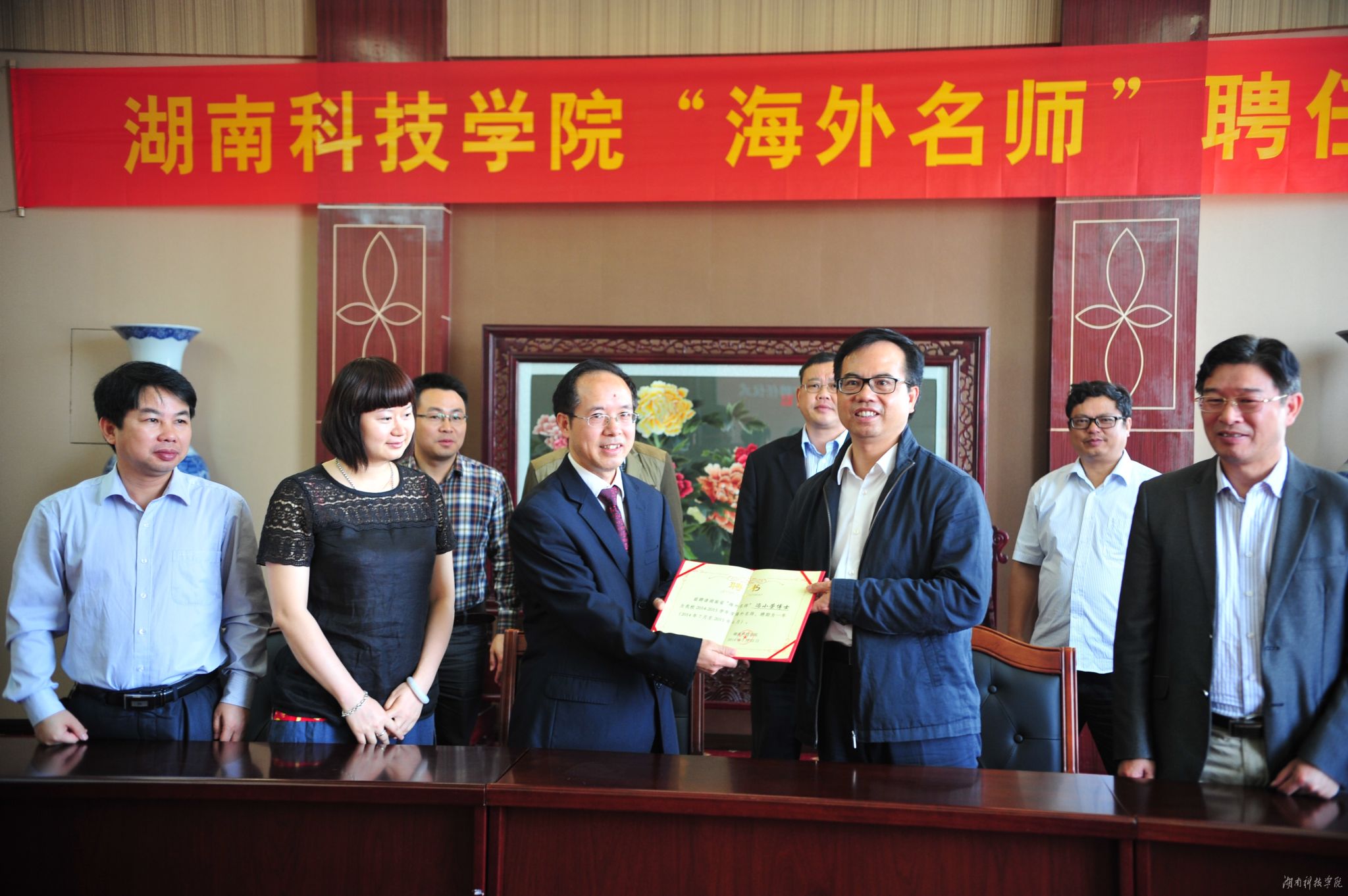 本网讯(记者 李瑛 摄影 秦峰)5月12日上午,学校在行政办公楼八楼会议室举行海外名师聘任仪式,美籍华人生物医学专家冯小荣博士受聘为vwin德赢首位“海外名师”,他将在化学与生物工程学院工作30天,开展一系列的授课、讲座、科研指导活动。校党委书记陈弘出席仪式,并为冯小荣颁发聘书。