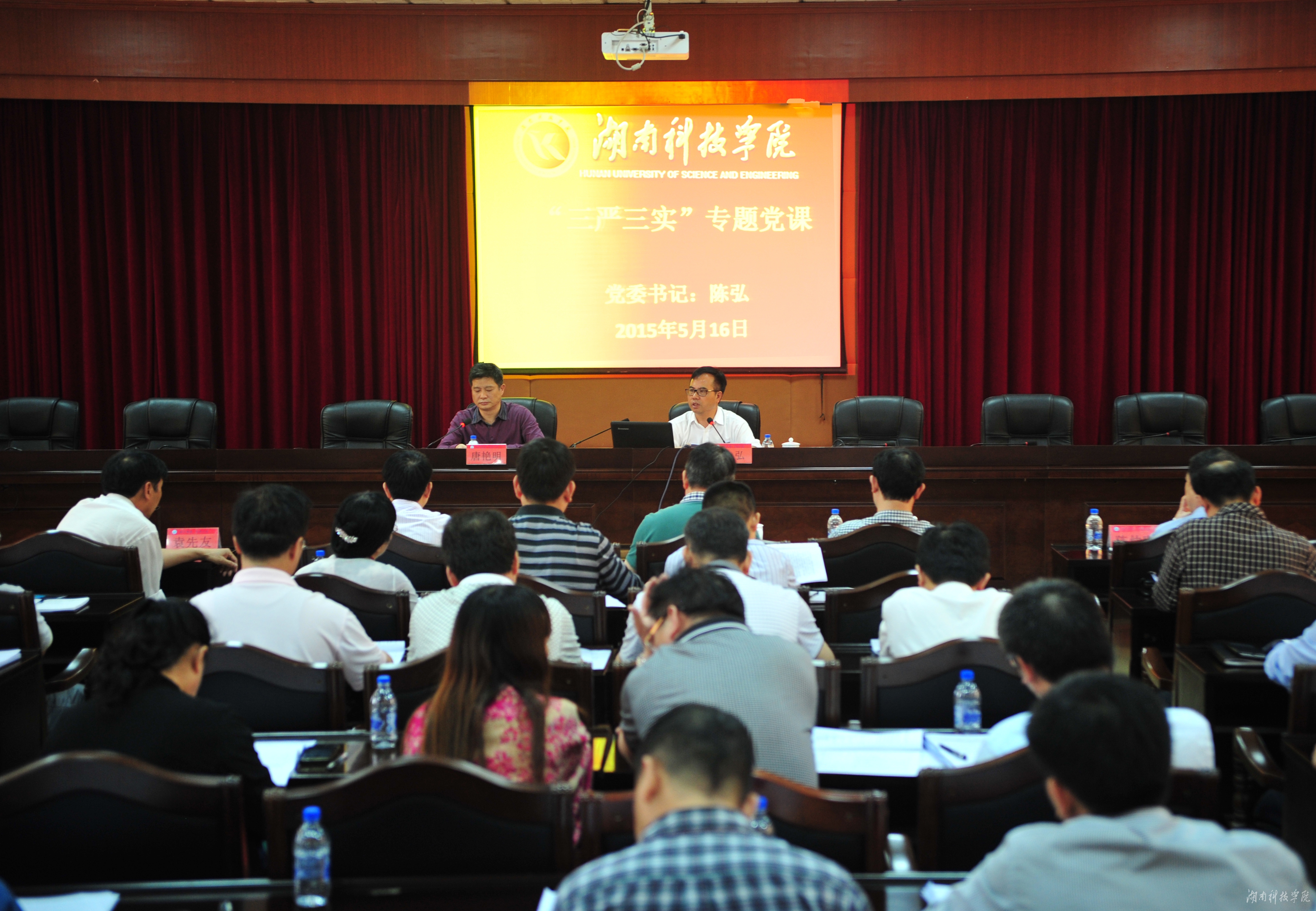 陈弘首先从自己的成长经历和工作心得说起,就“三严三实”的具体内涵和基本要求进行了解读。他指出,“三严三实”从价值追求和政治品格方面对共产党领导干部提出了明确要求,是共产党的领导干部的修身之本、为政之道、成事之要。开展“三严三实”专题教育,其目的是推动领导干部自觉践行“三严三实”,守纪律讲规矩,营造学校发展的良好政治生态环境,在真抓实干、改革发展稳定推进中见实效。