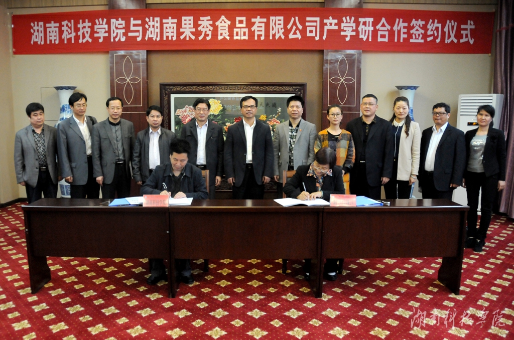 本网讯(记者 李瑛 唐玲君 刘宇航 摄影 秦峰)4月23日,全国人大代表、湖南果秀食品有限公司董事长阳国秀与vwin德赢校长曾宝成共同签订产学研合作协议。校领导陈弘、曾宝成、宋宏福、李常健、程智开及教务处、科技处、发展规划与学科建设处、生物与化学工程学院等领导共同见证了签约。阳国秀、胡可等优秀企业家同时向同学们传授创业经验,与青年学子分享创业心路和人生体会,给予创业指导,激发创业梦想。