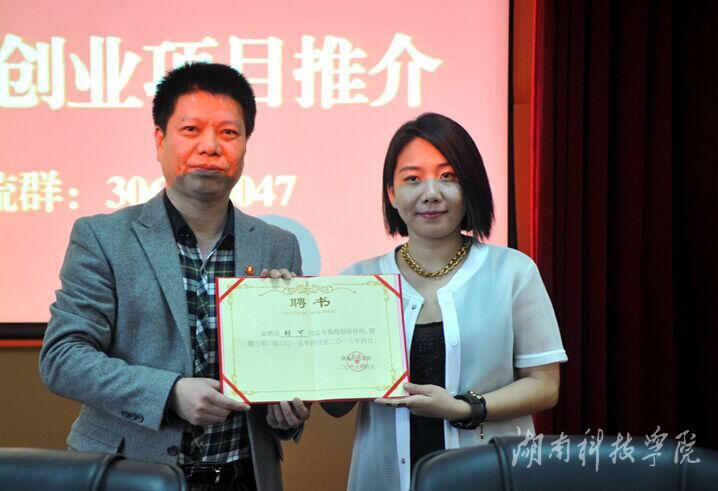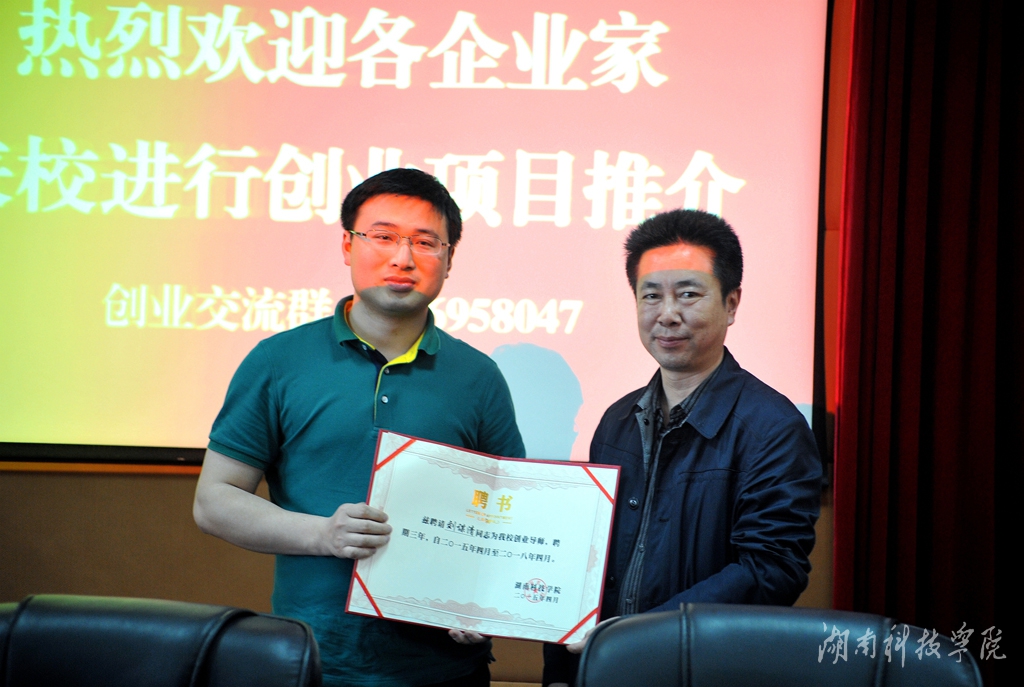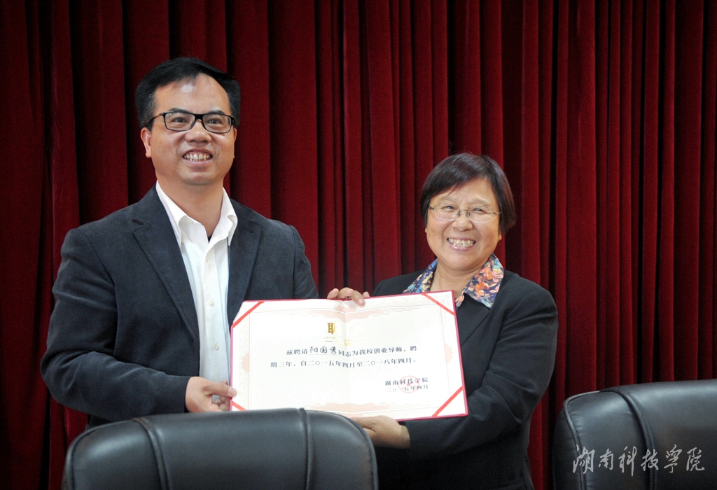 本网讯(记者 李瑛 摄影 秦峰)4月23日下午,学校在行政办公楼八楼会议室举行创业项目推介大会暨创业导师聘任仪式。校党委书记陈弘、校长曾宝成、副校长程智开兴致勃勃地与各位企业家、师生话创业、论项目,并聘请优秀企业家阳国秀、胡可、莫良、徐嘉、刘谋清、童欢聚等担任大学生创业导师。