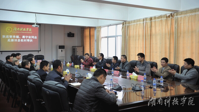 本网讯 (实习记者 段坤 摄影 秦峰)4月8日上午,由贺幸福、蒋宇宙两位同志组成的驻村帮扶工作队,将奔赴新田县冷水井乡潮水铺村开展为期三年的驻村帮扶工作。校党委书记陈弘、校长曾宝成、党委副书记唐艳明、副校长吴小林、副校长程智开和相关部门负责人热情欢送两位驻村干部。