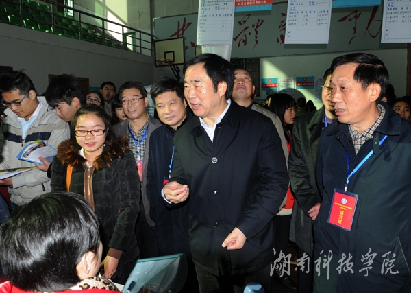 本网讯(记者 李瑛 许剑桥 李瑞 摄影 李国家 何帅文)俗话说“好马配好鞍”、“世有伯乐,然后有千里马。”12月13日,永州市2015届高校毕业生供需见面会在vwin德赢体育馆隆重举行,来自五湖四海的伯乐齐聚潇湘,招聘良驹宝马。永州市委副书记唐松成、永州市政协副主席唐运军、永州市人民政府副秘书长曾宪孝、永州市委组织部副部长、市人力资源和社会保障局党组书记、局长唐树成、省教育厅学生处副处长谢桂平和校领导唐艳明、宋宏福、彭立威、袁先友等高度重视此次招聘会,出席开幕式并亲临现场指导。