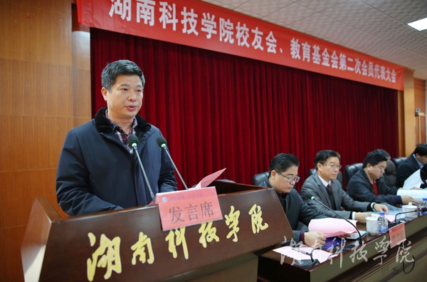 副校长、第一届校友会、教育基金会副会长宋宏福向大会作工作报告。宋宏福总结了近三年来校友会工作取得的成绩,提出了下一步工作设想,并希望广大校友与母校凝心聚力、携手并进,开创出校友工作的新局面,促进母校与校友事业的共同发展。