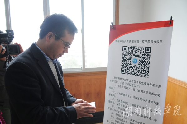 本网讯(记者 李瑛 摄影 何帅文)11月11日,校党委书记陈弘、校长曾宝成、校党委副书记唐艳明及相关职能部门负责人、部分学生代表共同见证了vwin德赢官方微信的正式上线。