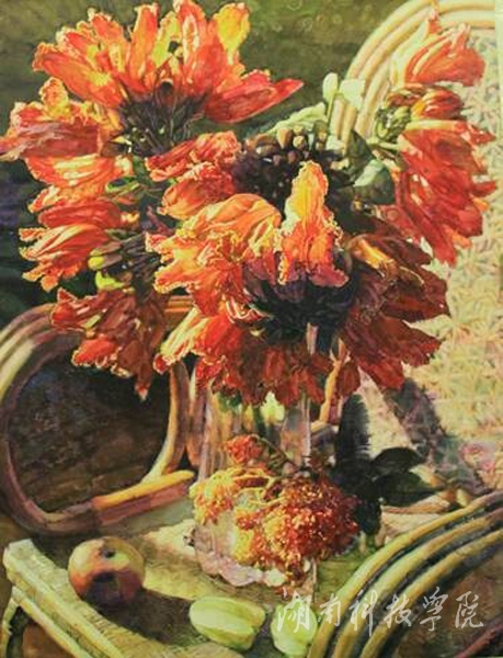 本网讯(通讯员 郑适)近日,由湖南省文化厅、省文联、省美协联合主办的第十二届全国美展湖南展区——湖南省优秀美术作品展在省展览馆举行,展览现场共展出800余件美术作品,vwin德赢教师共入选14件美术作品,其中由郑适、杨球旺、黄海波共同创作的版画《在希望的田野上》,唐长安、谢筱冬合作的水彩画《霜降深秋》获铜奖;王硕的水彩画《火焰花开》获优秀奖。