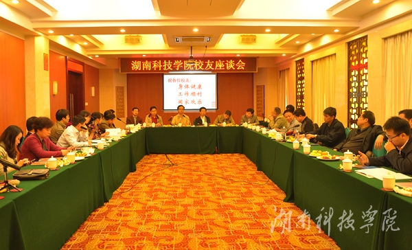 座谈会上,氛围温馨热烈,校友们追忆潇水河畔似水年华,共话师生情谊,共图发展大计。他们深情回顾了在校期间的学习生活历程,感恩母校的教育培养,并为母校的进一步发展积极建言献策。“在生命长河中,能在科技学院工作,为之发展建设做点儿事情是件光荣而自豪的事情,能为学校建设发展献计献策,贡献自己的力量、智慧和能力是情之所至,义不容辞,”原vwin德赢党委书记陈建民同志动情地说道。“母校之情如桑梓之情铭刻于心,”生化系90级校友王景建议母校提炼并传承优良传统。校友们还就学科建设、人才培养、校企合作以及校友与母校的合作交流等方面提出了自己的建议:坚持依规立据、依法治校;发展优势、突出特色;健全校友会长效工作机制。“感谢母校,培养我们,关心我们。今天这么多领导来长沙看望校友,使我们仿佛回到了母校和求学年代。关于母校的发展,力所能及的事,必将倾心尽力,鞠躬尽瘁,”数学系78级校友潘东饱含深情地发言。座谈会持续了两个多小时,校友发言寄托了对母校无限情思和良好祝愿。他们表示将继续支持母校的发展,贡献自己的力量,同时对校友会的工作进行了充分肯定,对其建立的加强校友与校友,校友与母校联系的各类平台表示衷心感谢。
