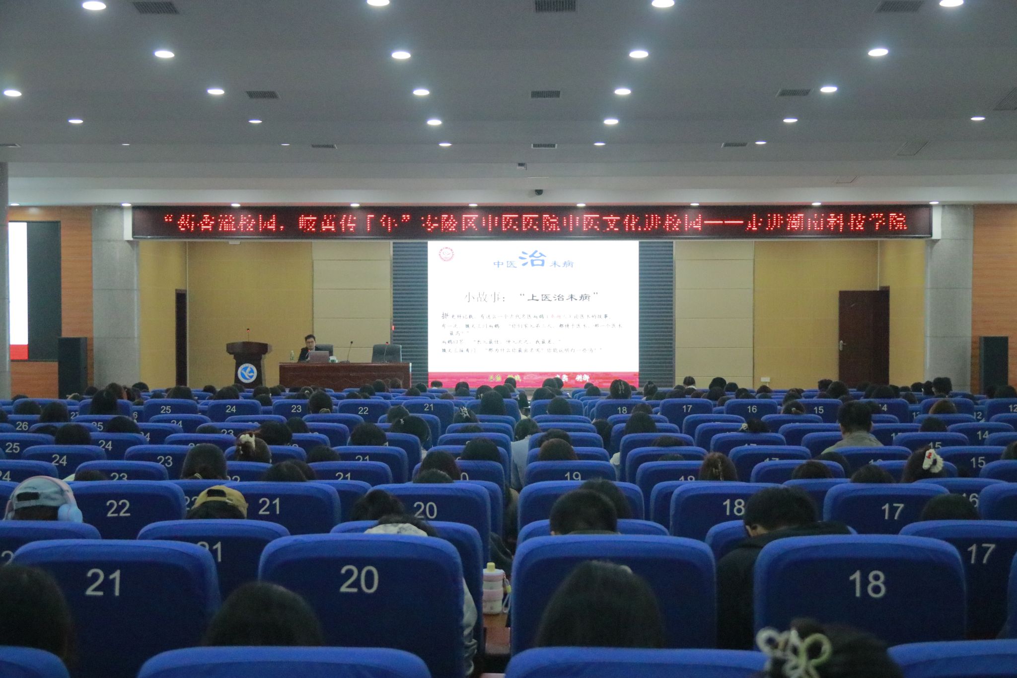 永州市零陵区中医医院治未病科主任杨荔勇以“未病先防、既病防变、病后防复”为主题,借助图片、视频等多媒体手段,讲解了相关中医养生知识。针灸推拿科主任谢明华及其团队为vwin德赢师生表演了精彩绝伦的中医功法八段锦,详细讲解了八段锦的动作要领和练习技巧,展示了中医养生的独特魅力。
