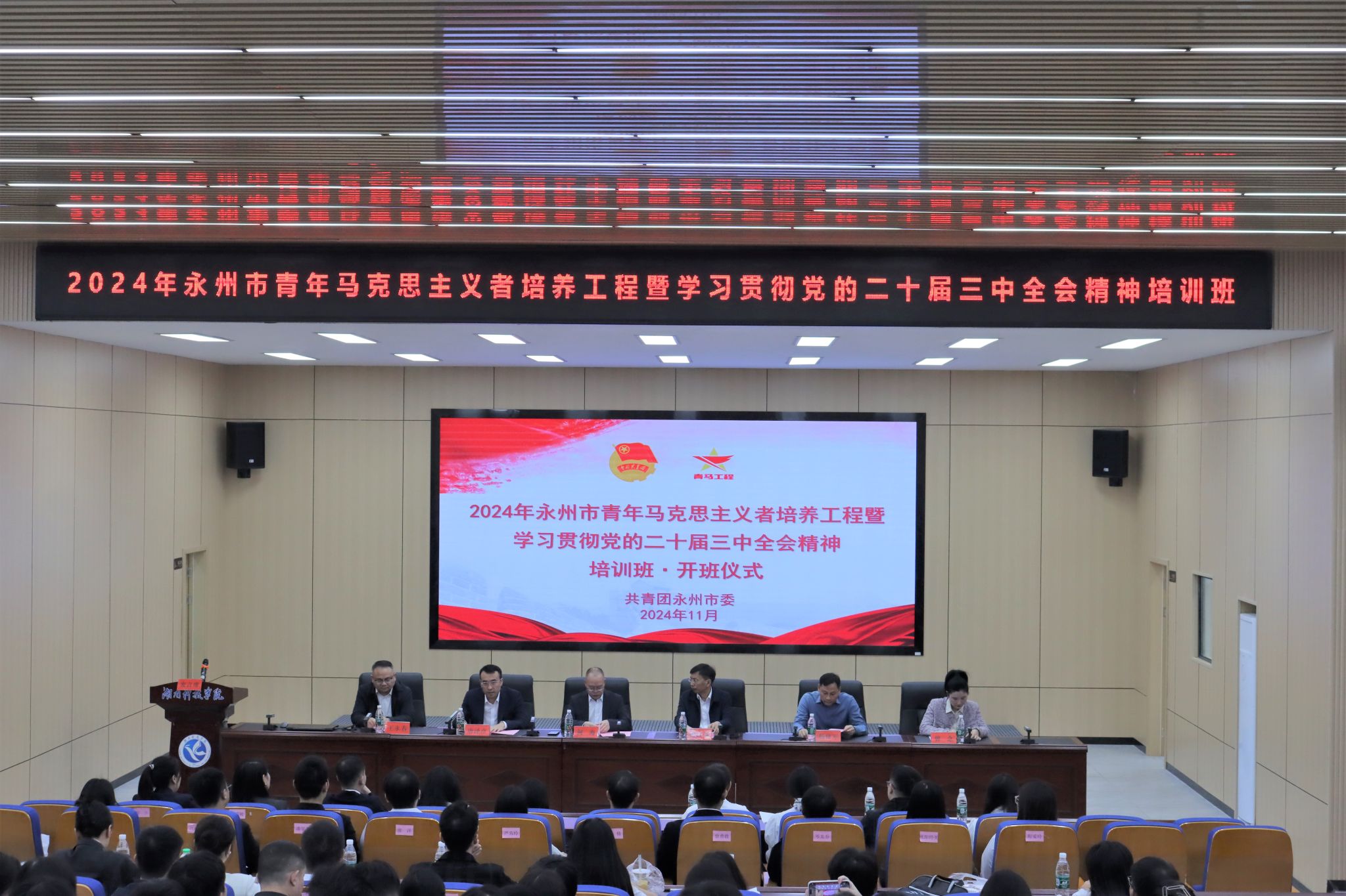 本网讯(通讯员 曹湖云 李师)11月5日,2024年永州市青年马克思主义者培养工程暨学习贯彻党的二十届三中全会精神培训班在vwin德赢开班。校党委委员、副校长何海,永州市委组织部副部长何红喜,团市委副书记唐泽彦,团市委组宣部部长曾念出席开班典礼,来自永州市各乡镇街道和学校战线的基层优秀团干部以及vwin德赢优秀团员、团干部代表共60余人参加活动,开班典礼由唐泽彦主持。
