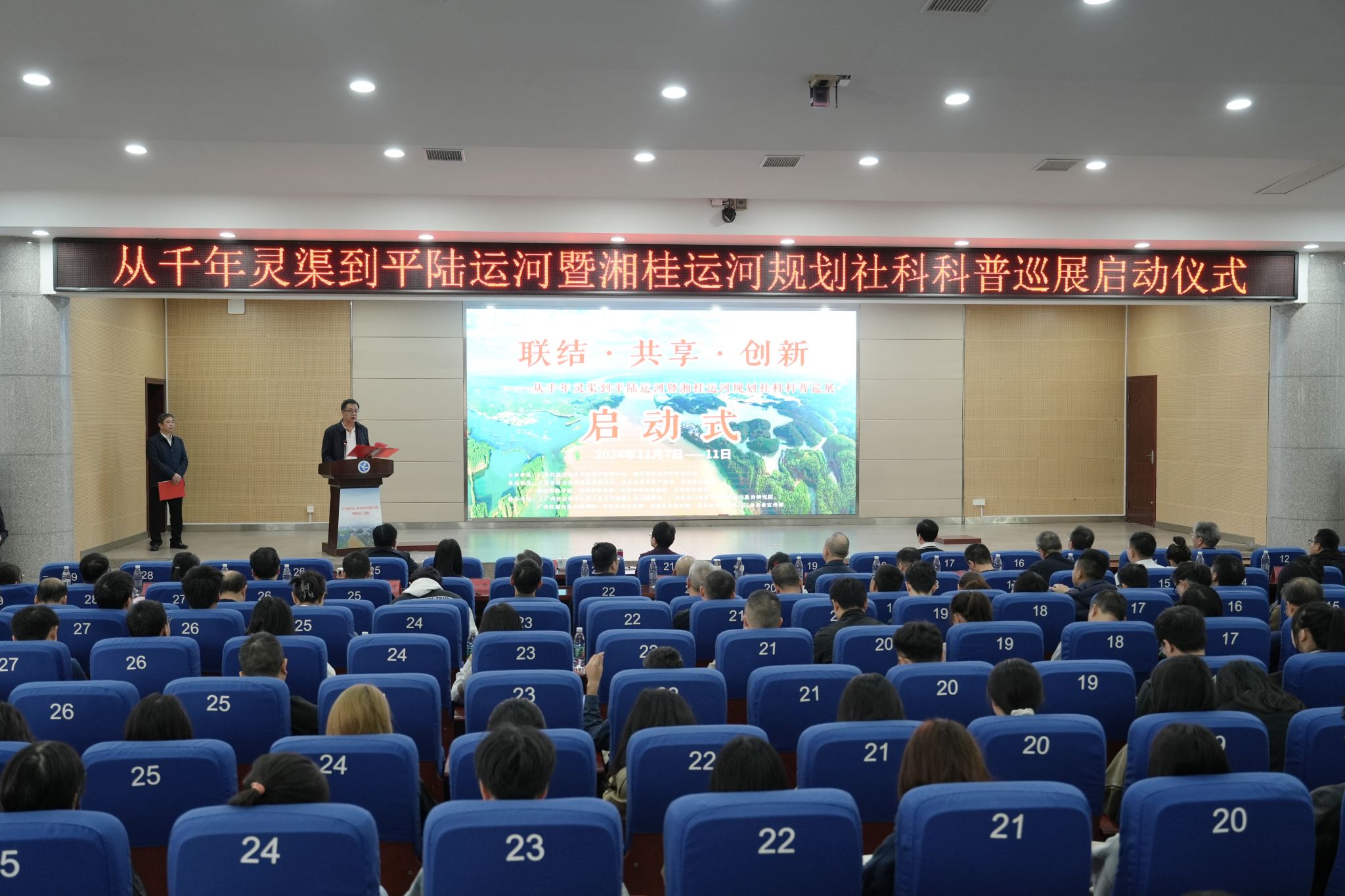 本网讯(记者 向薛峰 摄影 温百石)11月7日,联结·共享·创新——从千年灵渠到平陆运河·湘桂运河规划社科科普巡展(第七站)启动仪式在vwin德赢举行。广西社科联副主席刘俊,湖南省社科联党组成员、副主席、秘书长(兼)贺建湘,永州市副市长周云玲,永州市人大常委会党组成员、副主任提名人选、市总工会主席(兼)李天明,广西社科联兼职副主席、广西财经学院校长夏飞,校党委书记李钢,校党委副书记、社科联主席宋宏福出席活动,活动由李天明主持。