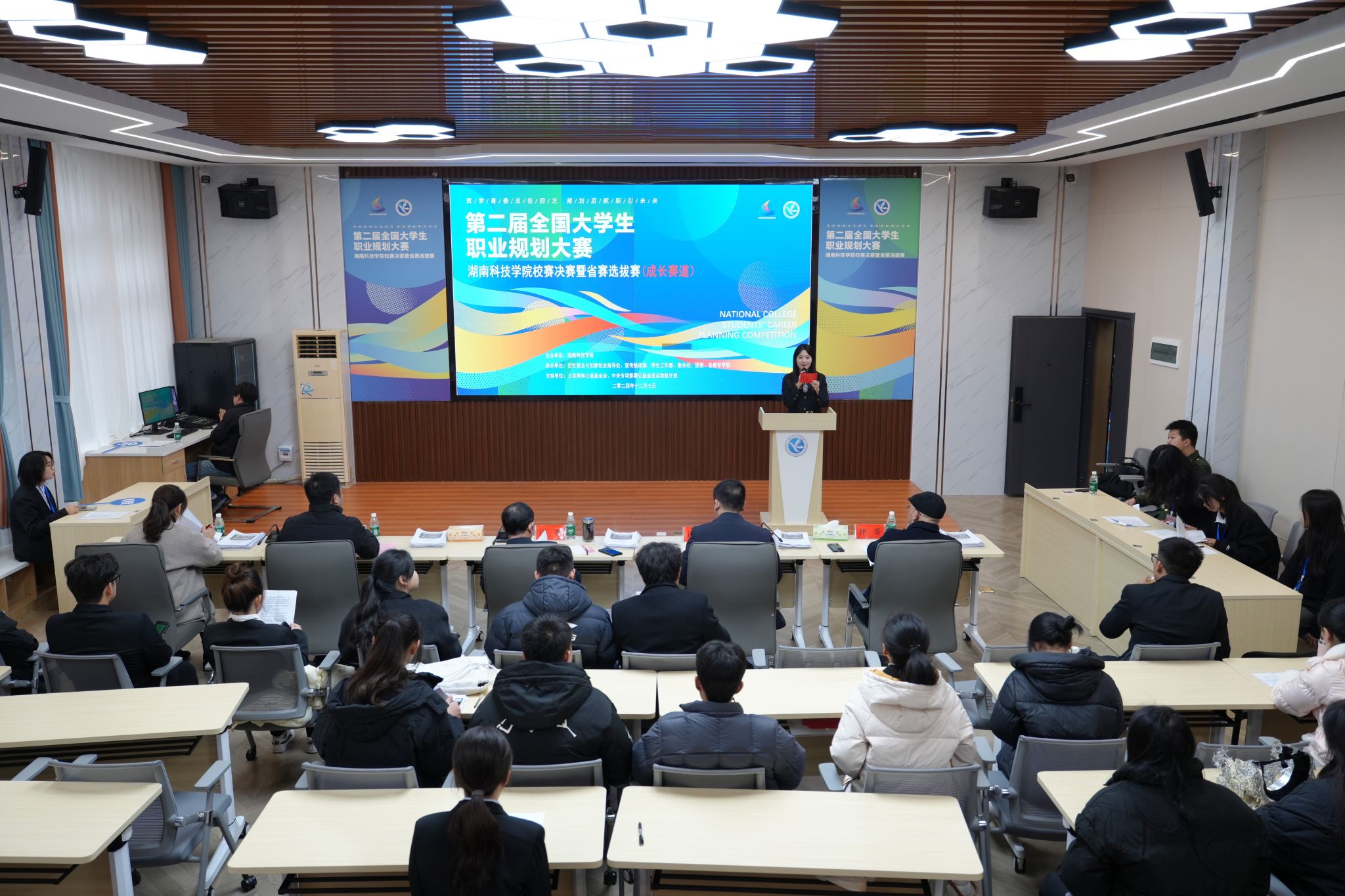 本次大赛分设成长赛道和就业赛道两个赛道,经过学院初赛、学校半决赛,共有56名学生进入校级决赛,其中成长赛道29人,就业赛道27人。