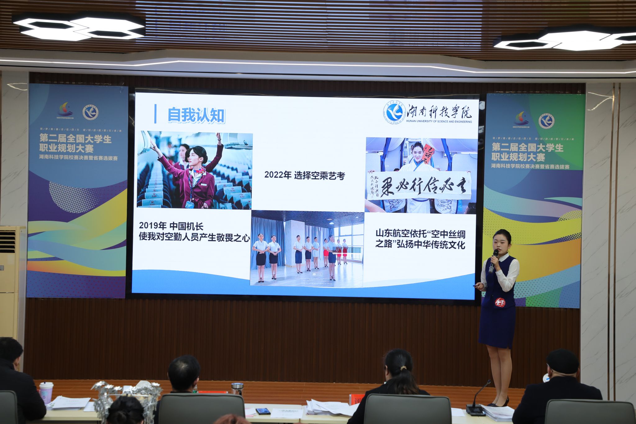 决赛现场,选手们结合个人成长经历、专业学习、获奖成果、科研竞赛和实习实践等情况,通过现场演讲、PPT展示、视频短片等多种形式,展示了自身职业发展规划的全过程和各方面。选手们以富有激情的演讲、生动的语言以及投入的演绎,表达了自身对于职业目标的认知以及未来从事目标职业的决心与毅力,赢得了在场评委和观众的阵阵掌声。专家评委从专业能力与求职岗位的匹配度、实习经验的积累、个人理想与家国需求的连接等方面对选手们进行了专业点评,并提供个性化指导建议,助力学生明晰职业发展方向,提升职业规划水平。