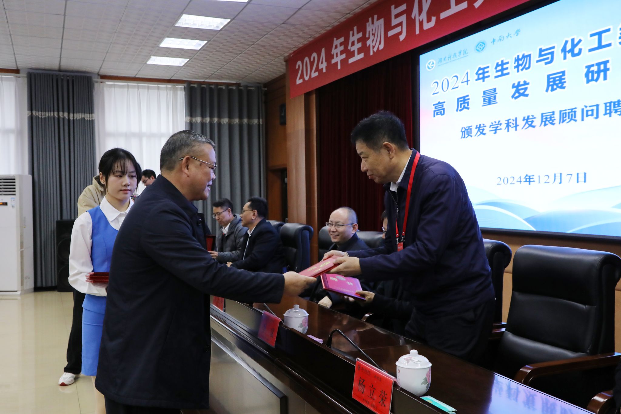 会议现场,还为部分知名专家学者颁发了生物工程省级应用特色学科发展顾问聘书。