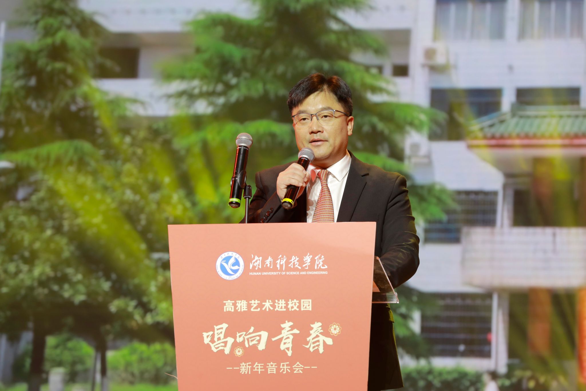 本网讯(记者 刘斌 摄影 谢志豪)12月30日晚,vwin德赢成功举办高雅艺术进校园暨2025年“唱响青春”新年音乐会。本次活动由湖南省教育厅、中共湖南省委宣传部、湖南省财政厅、湖南省文化和旅游厅主办,由湖南省歌舞剧院和vwin德赢承办。永州市人大常委会主任、党组书记蒋强先,永州市人大常委会副主任陈丽萍,冷水滩区委副书记、区长李辉,零陵区委副书记、区长龙亮,冷水滩区副区长王新丰,校党委书记李钢,党委副书记、校长黄创霞等全体在家校领导出席活动,全体教职员工及学生代表观看演出。李钢为本次新年音乐会致辞。