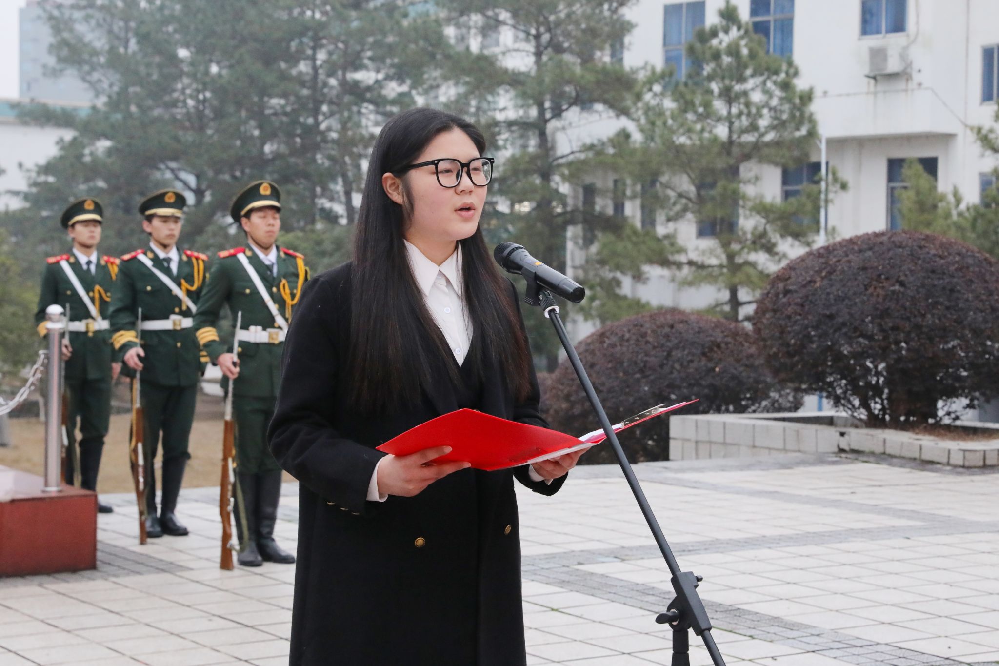 学生代表、外国语学院日语2202班于璟同学以《逐梦前行,以热爱铸就辉煌》为题进行了发言。她号召大家用脚步丈量梦想,以奋斗诠释青春,用五彩斑斓的微光点亮伟大的祖国,让梦想在国旗下熠熠生辉。