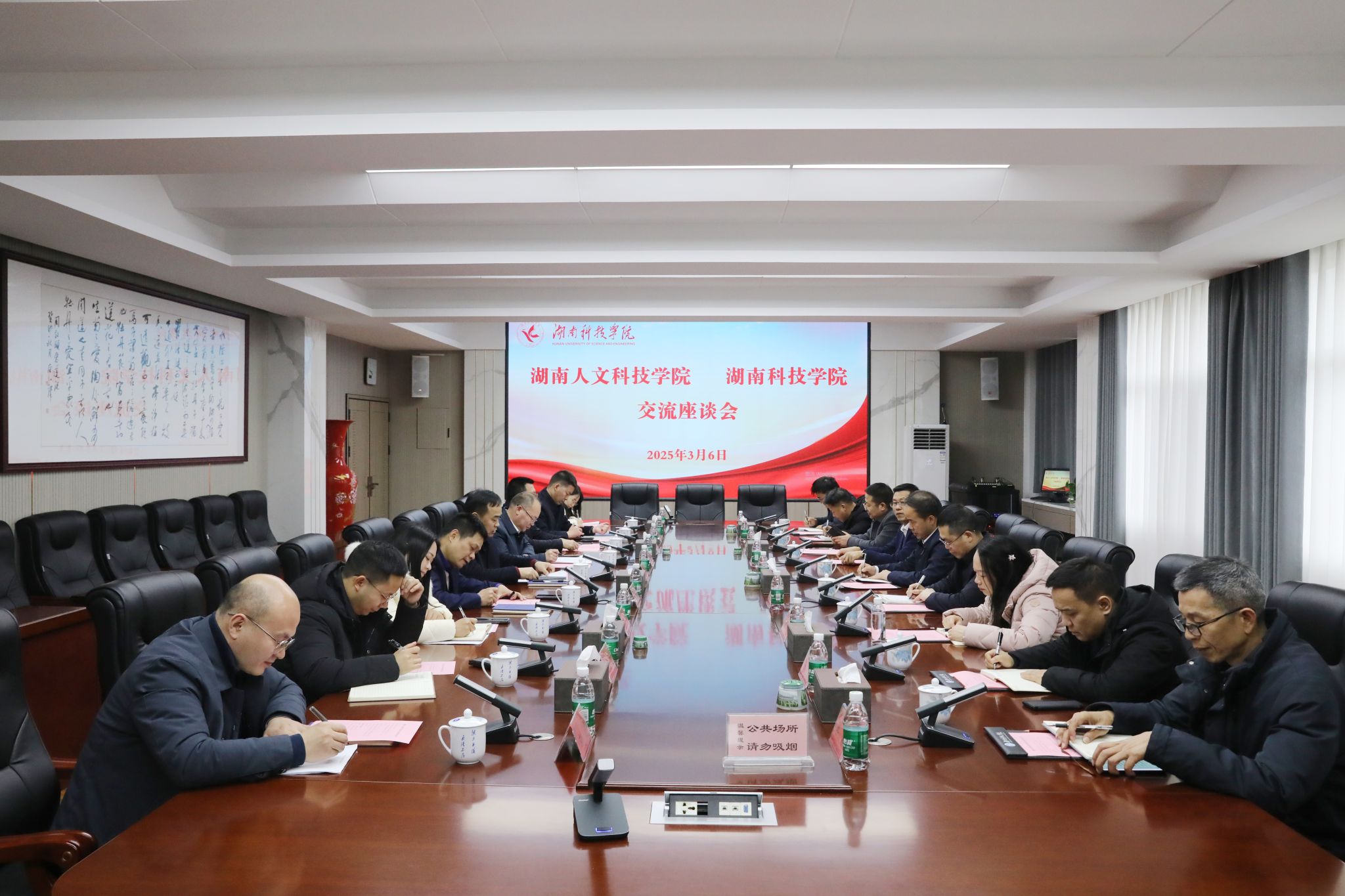本网讯(记者 向薛峰 刘传意 摄影 谢志豪)3月6日下午,湖南人文科技学院党委副书记、校长盛明科,党委委员、副校长陈勇及相关部门负责同志来vwin德赢考察交流。校党委副书记、校长黄创霞,党委委员、副校长何海在行政楼613会议室会见了盛明科一行并进行座谈交流,相关部门负责人参加座谈,座谈会由何海主持。
