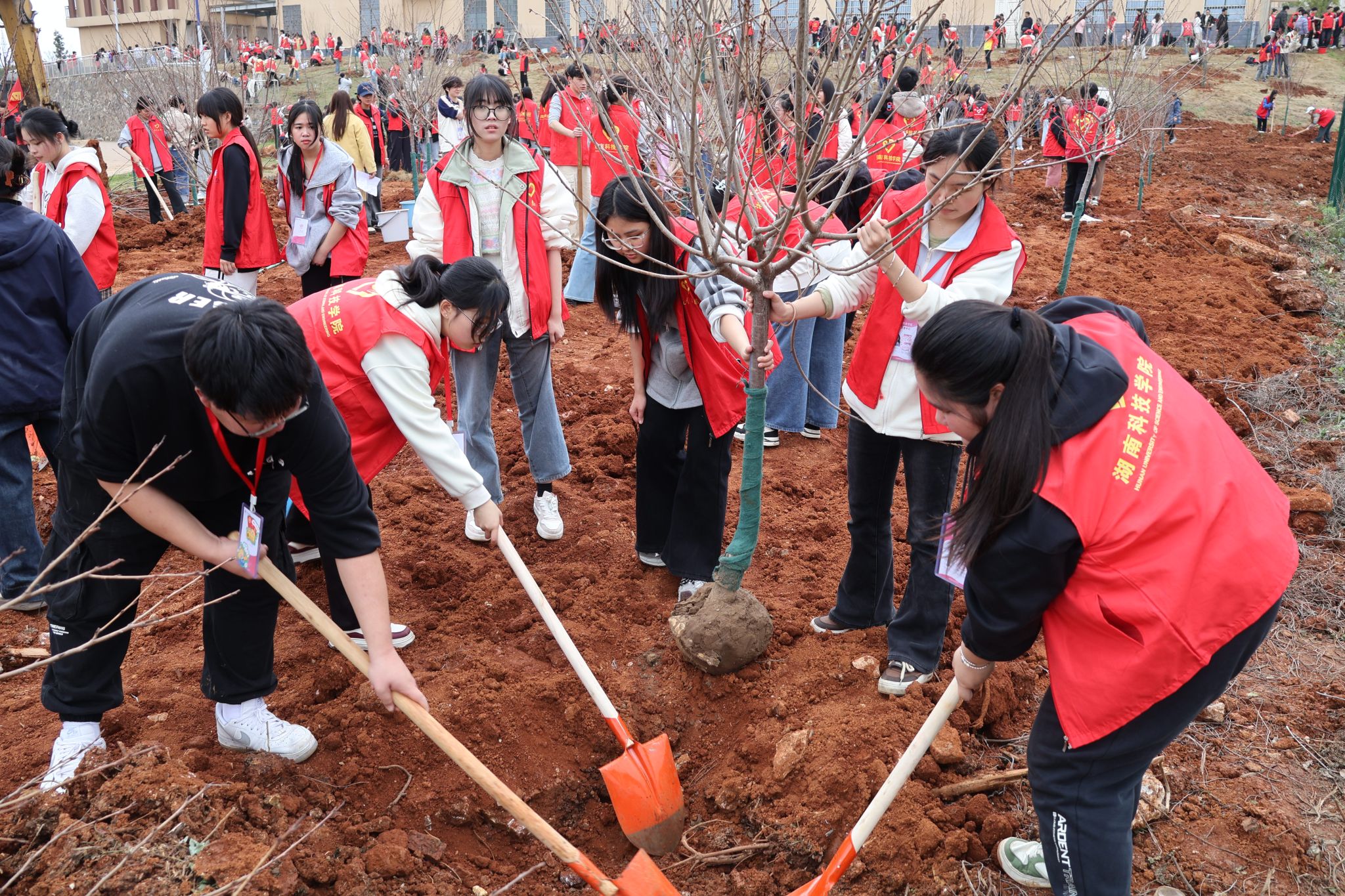 本网讯(记者 谷利梅 向玉珍 向薛峰 摄影 谢志豪)春潮涌动催人进,绿意盎然正当时。3月11日下午,校党委书记李钢,党委副书记、校长黄创霞等全体校领导、党委委员与部分师生代表来到工程实训中心侧面空地,开展“躬身植新绿,勤耕育新人”志愿植树活动,以实际行动为学校厚植绿色底蕴。