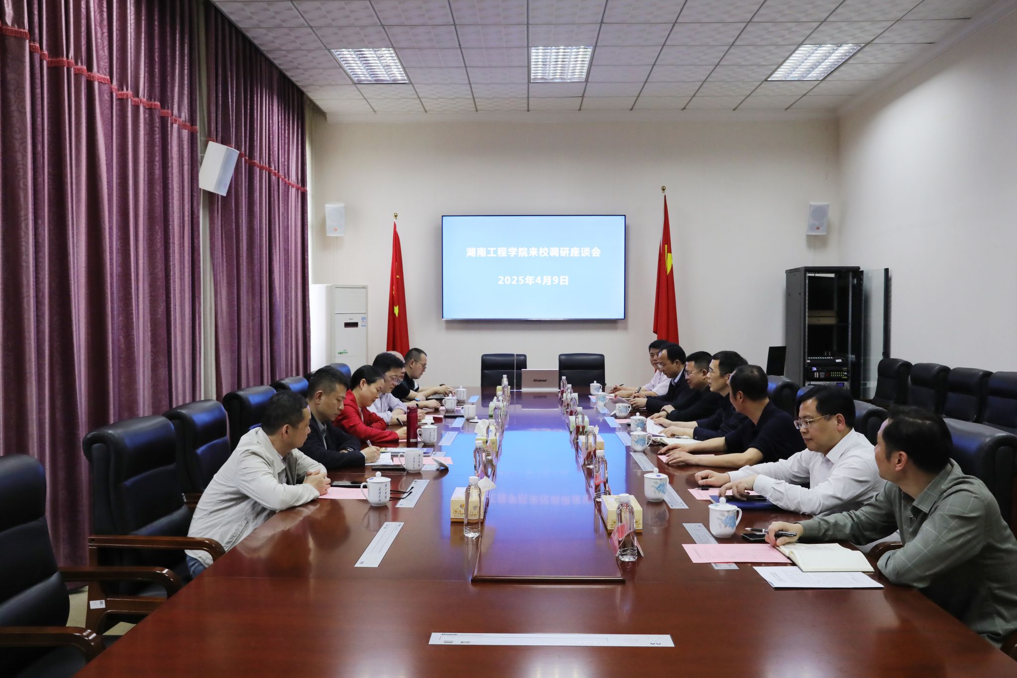 本网讯(记者 谢志豪) 4月9日,湖南工程学院党委副书记向前带领该校宣传部、校友联络中心、继续教育学院、机械工程学院相关负责人来校交流,纪委书记陈灿军,党委委员、组织部部长杨涛及相关职能部门负责人参加座谈交流。