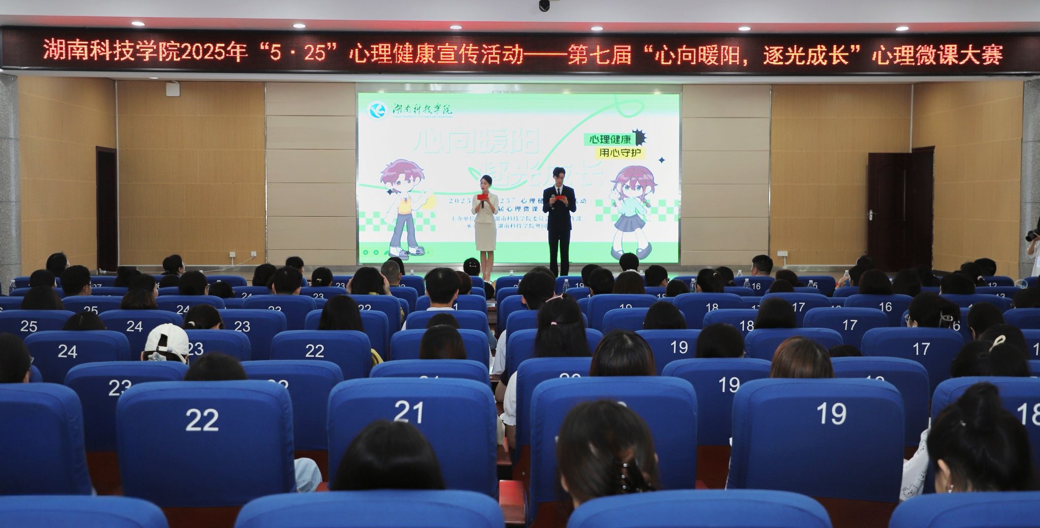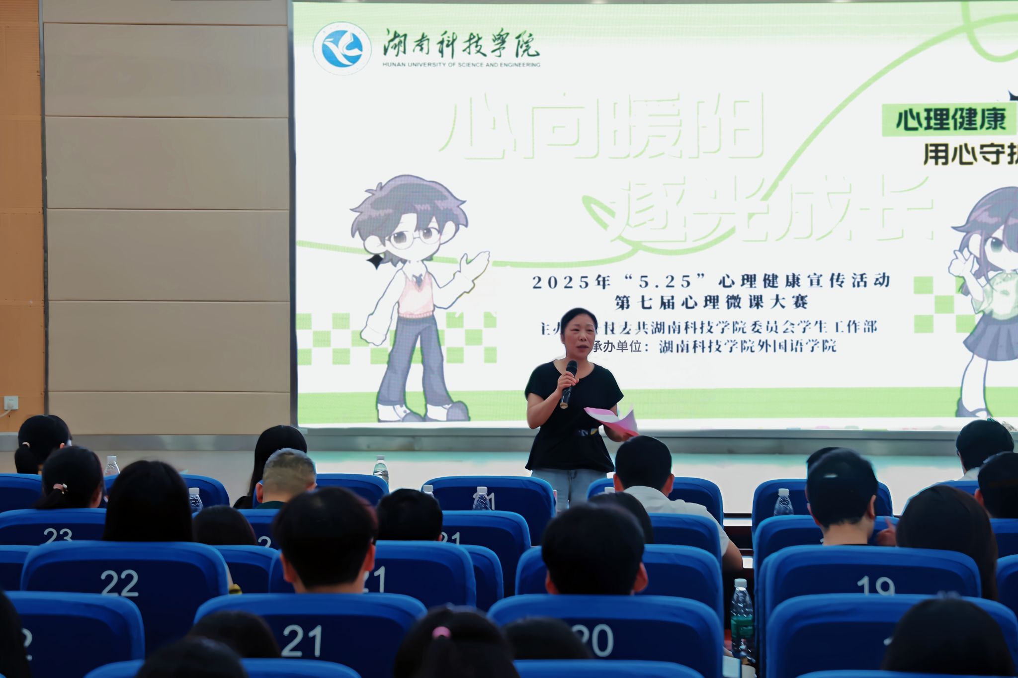 本网讯(通讯员 黄雅丽)5月15日晚,学校在潇湘大讲堂举办第七届心理微课大赛,大赛由学生工作部主办、外国语学院承办。校党委委员、组织部部长杨涛出席活动。学生工作部相关负责人、外国语学院相关负责人、各学院党总支副书记及师生代表共700余人现场观摩比赛。