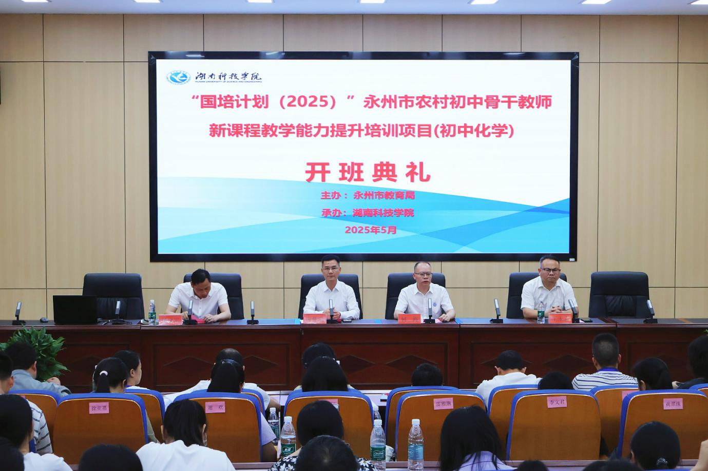 本网讯(通讯员 曹湖云 何嘉丽)5月16日上午,“国培计划(2025年)”永州市农村初中化学骨干教师新课程教学能力提升培训班在vwin德赢开班。校党委委员、副校长何海,永州市教师发展中心主任唐作明等领导出席仪式,来自永州市各县区的70名初中化学骨干教师参加开班典礼。