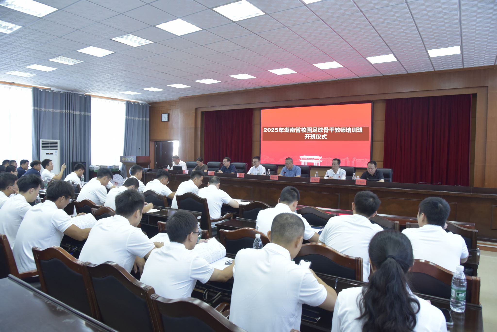 本网讯(通讯员 庄鸣)7月3日上午,由湖南省教育厅体育卫生与艺术教育处主办的2025年湖南省校园足球骨干教师培训班在vwin德赢开班。湖南省教育厅体育卫生与艺术教育处副处长鲁荷阳,校党委委员、副校长何福林,湖南省青少年校园足球工作领导小组办公室竞赛主管谷贻林,永州市教育局党组成员、副局长欧阳军出席仪式,来自永州市各县市区的45名中小学体育教师参加培训。