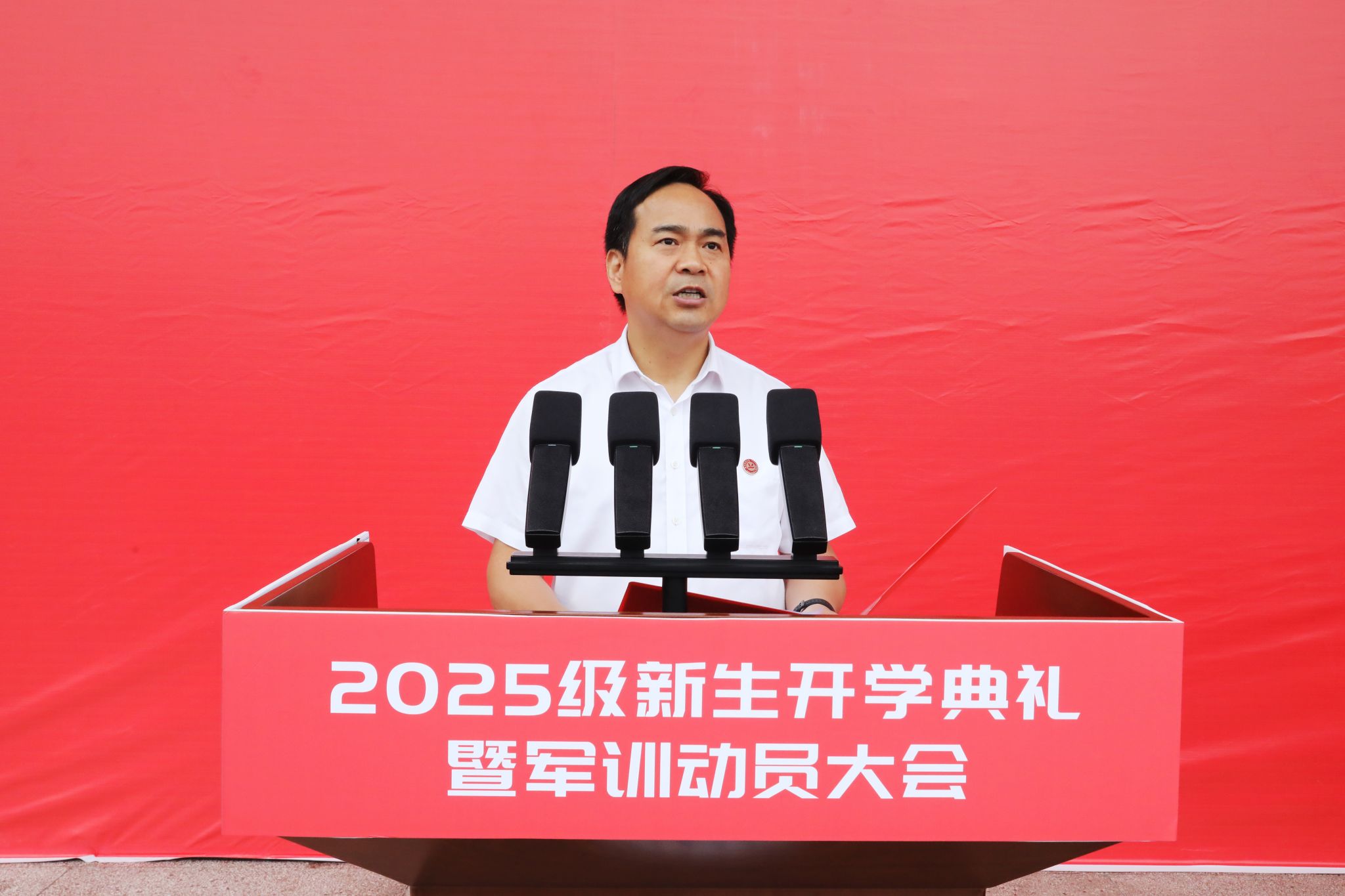 典礼在热烈的掌声中圆满落幕,随后,还举行了2025级新生军训动员大会。