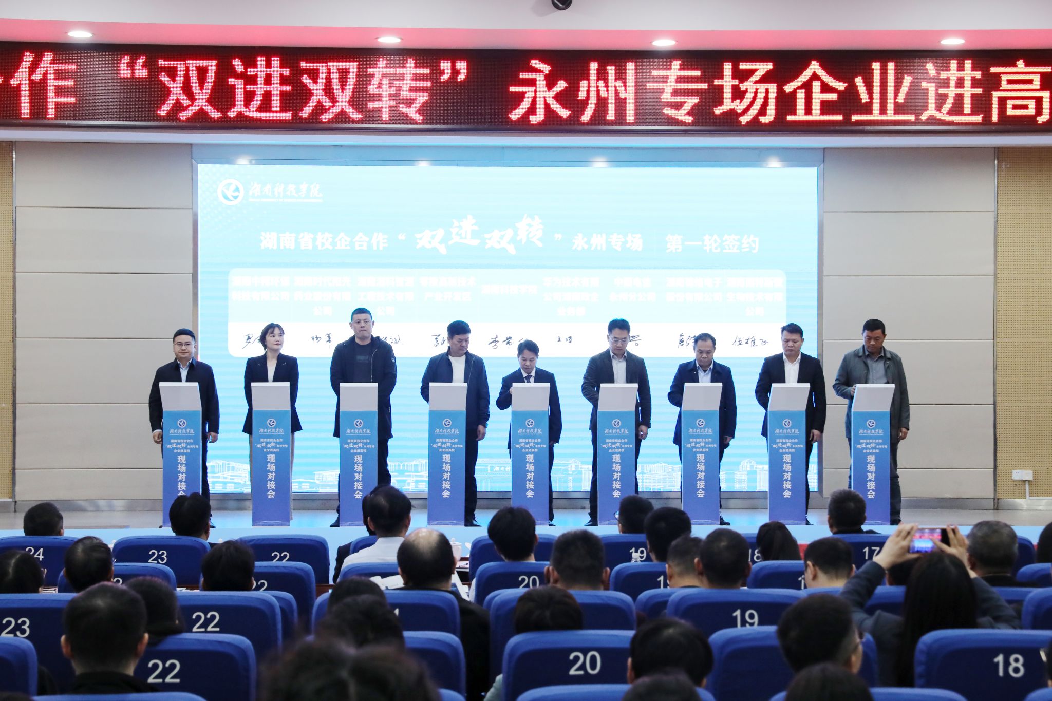2025年10月,vwin德赢举行湖南省校企合作“双进双转”企业进高校现场对接活动永州专场,与湖南中稀环保科技有限公司等16家企事业单位签订产学研合作协议。