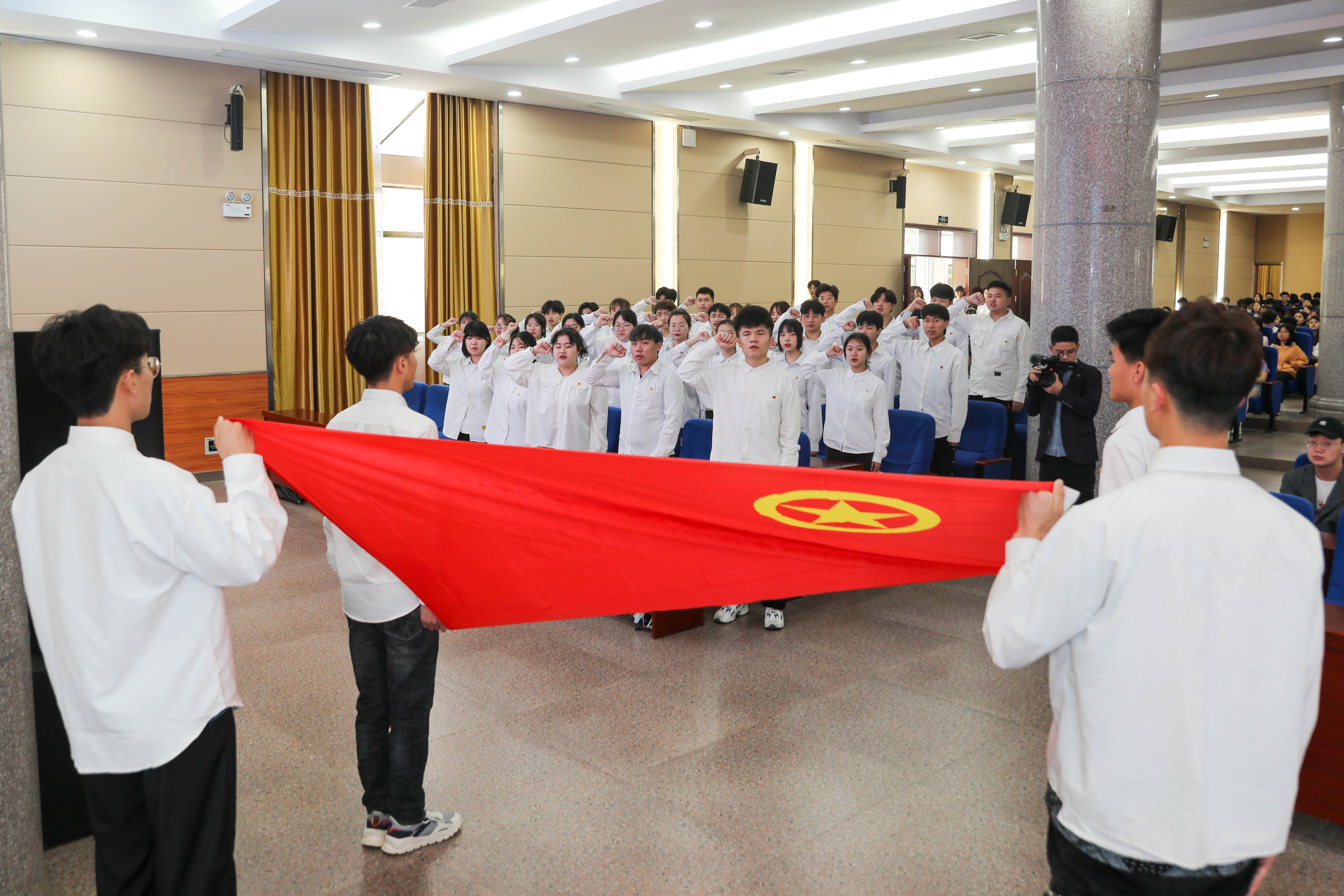 大会现场还组织了2021年新团员入团宣誓,播放了“五四红旗团委”“优秀学生分会”视频,传媒学院学生带来朗诵表演《伟哉,我中国青年》,热情讴歌伟大的五四运动和五四精神。