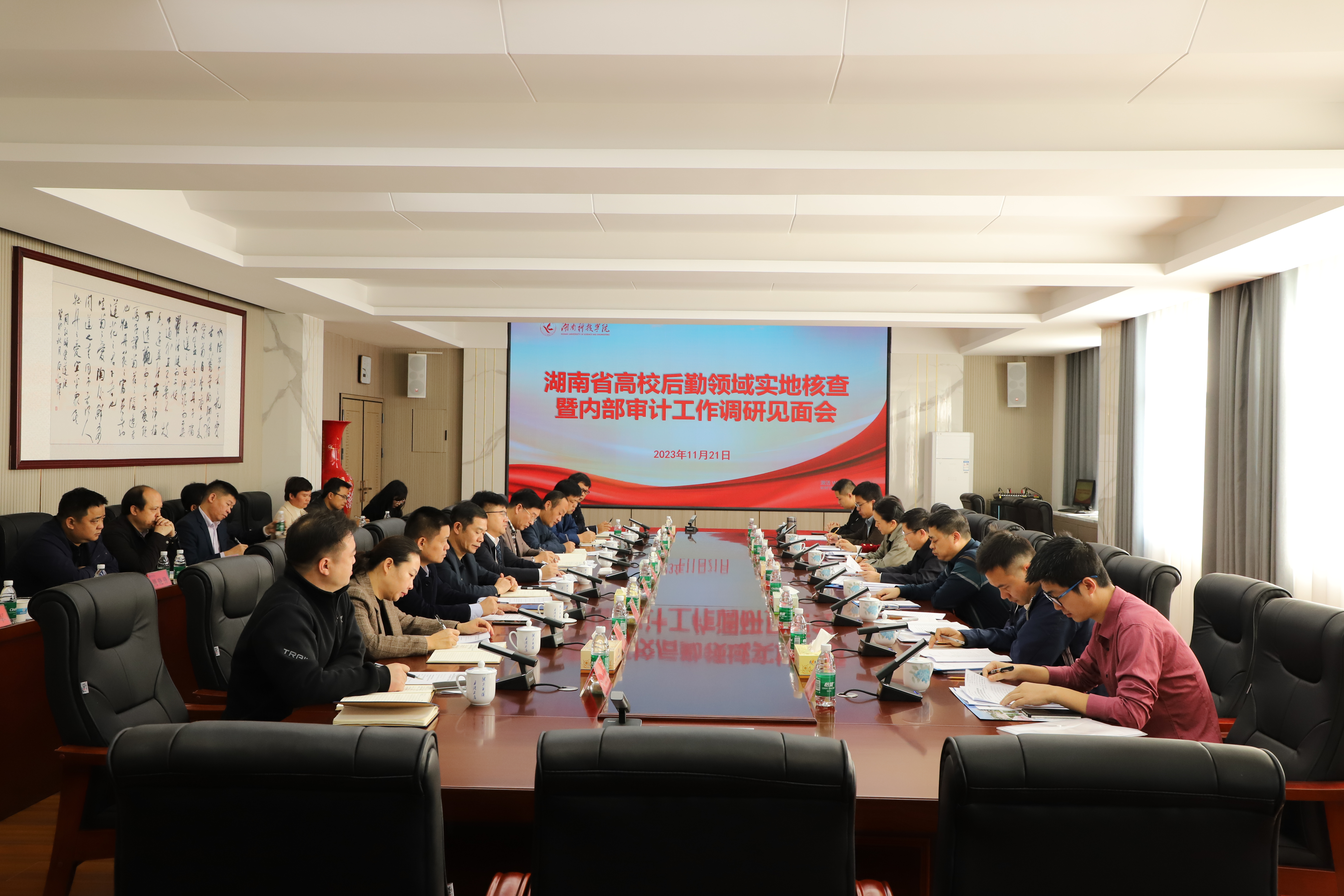 本网讯(记者 余佳佳)11月21日,省教育厅二级巡视员喻志松一行来校就学校后勤、内部审计工作进行实地考察和调研走访。党委书记李钢,党委副书记宋宏福,党委委员、副校长吴小林,党委委员、组织部部长杨涛出席调研座谈会。会议由吴小林主持。