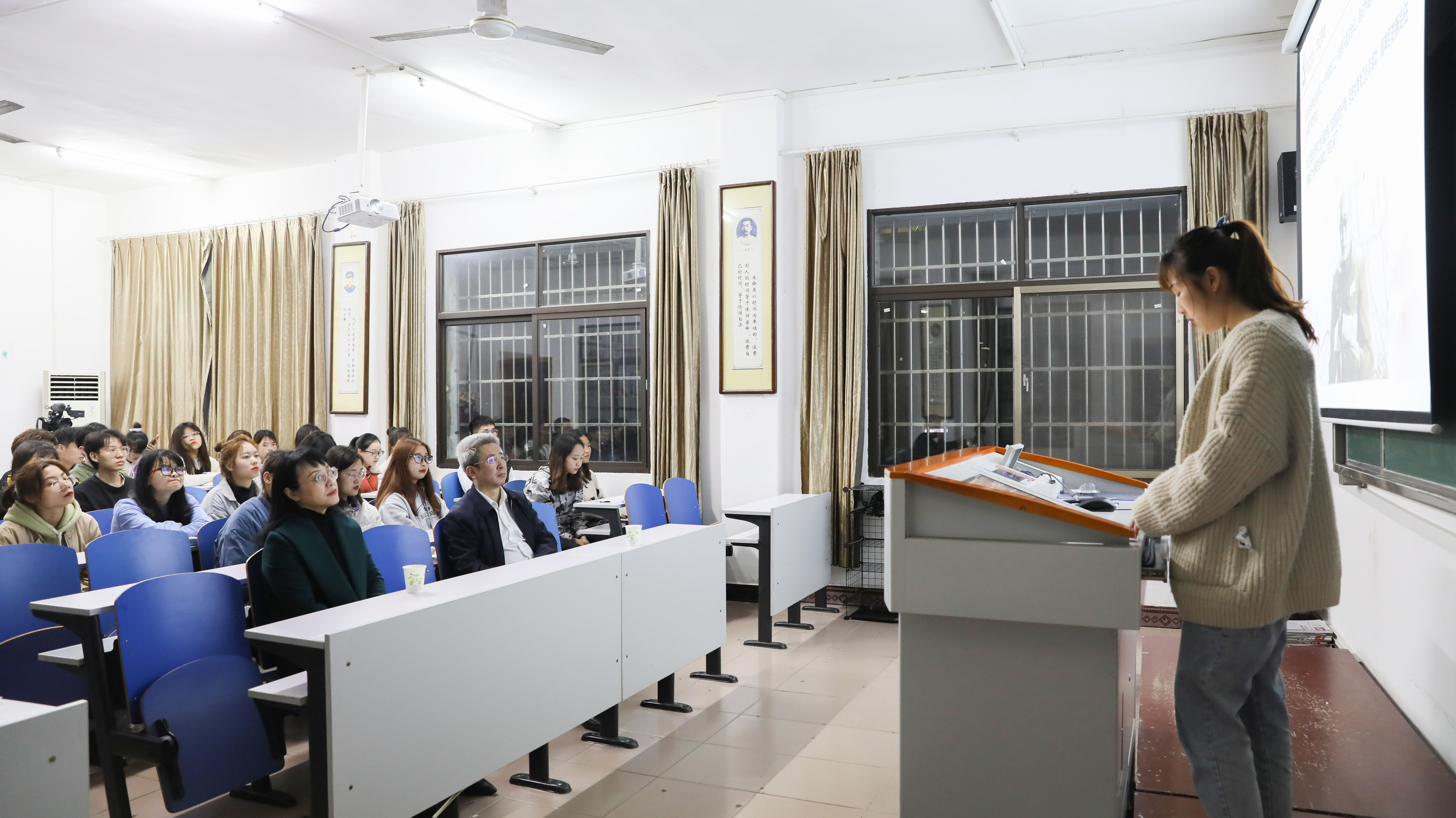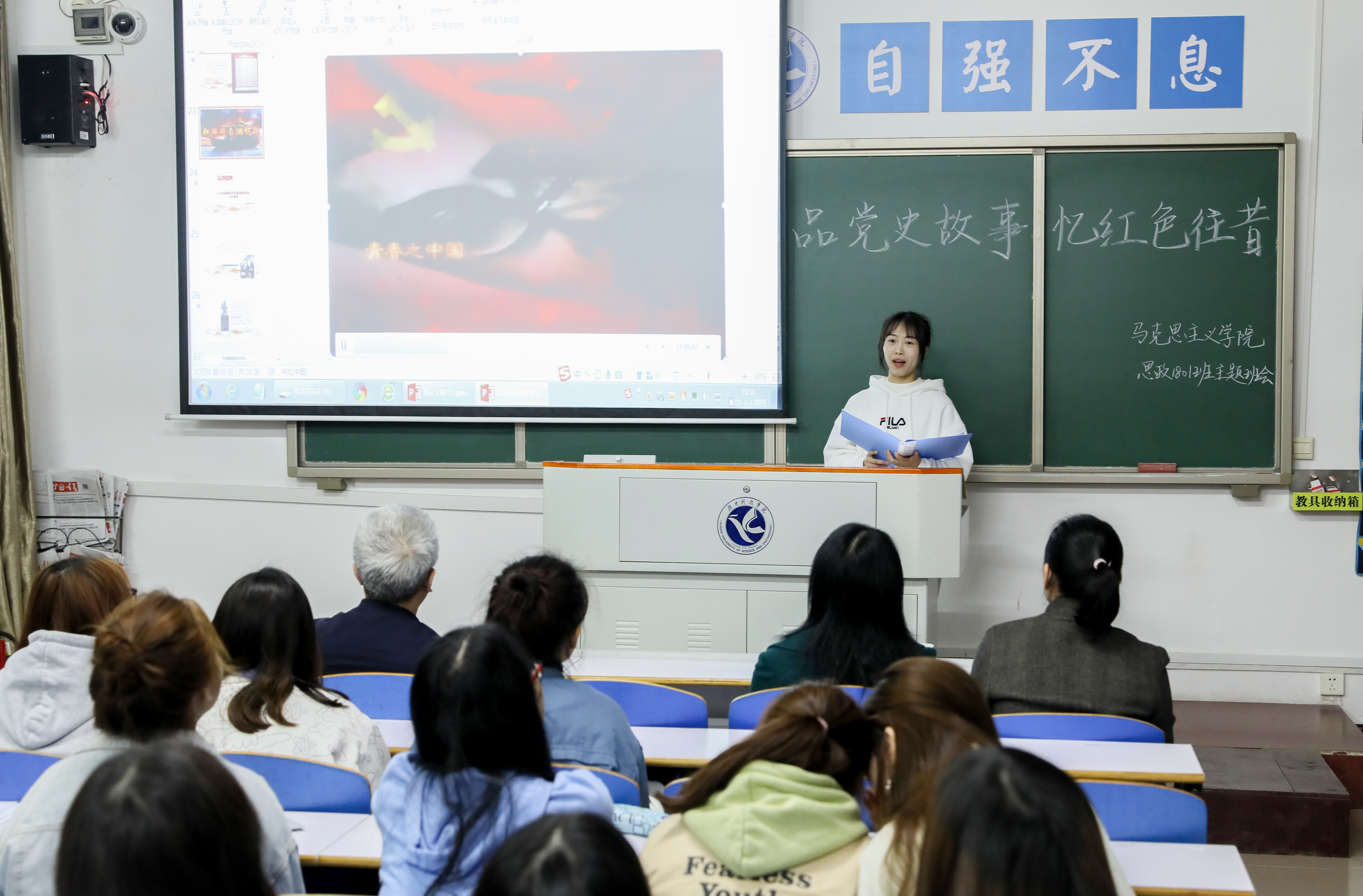 从“红船精神”到“长征精神”,从“抗战精神”到“抗疫精神”,从“抗美援朝精神”到“九八抗洪精神”……主题班会上,夏青叶、苏田心、李佳、刘慧、蒋依晴等同学走上讲台,以革命先烈和历史事件为题材,将激情燃烧的红色故事娓娓道来,分享了自己对新时代传承红色基因重要价值的认识,表达了学史明理、学史增信、学史崇德、学史力行的坚定信念。