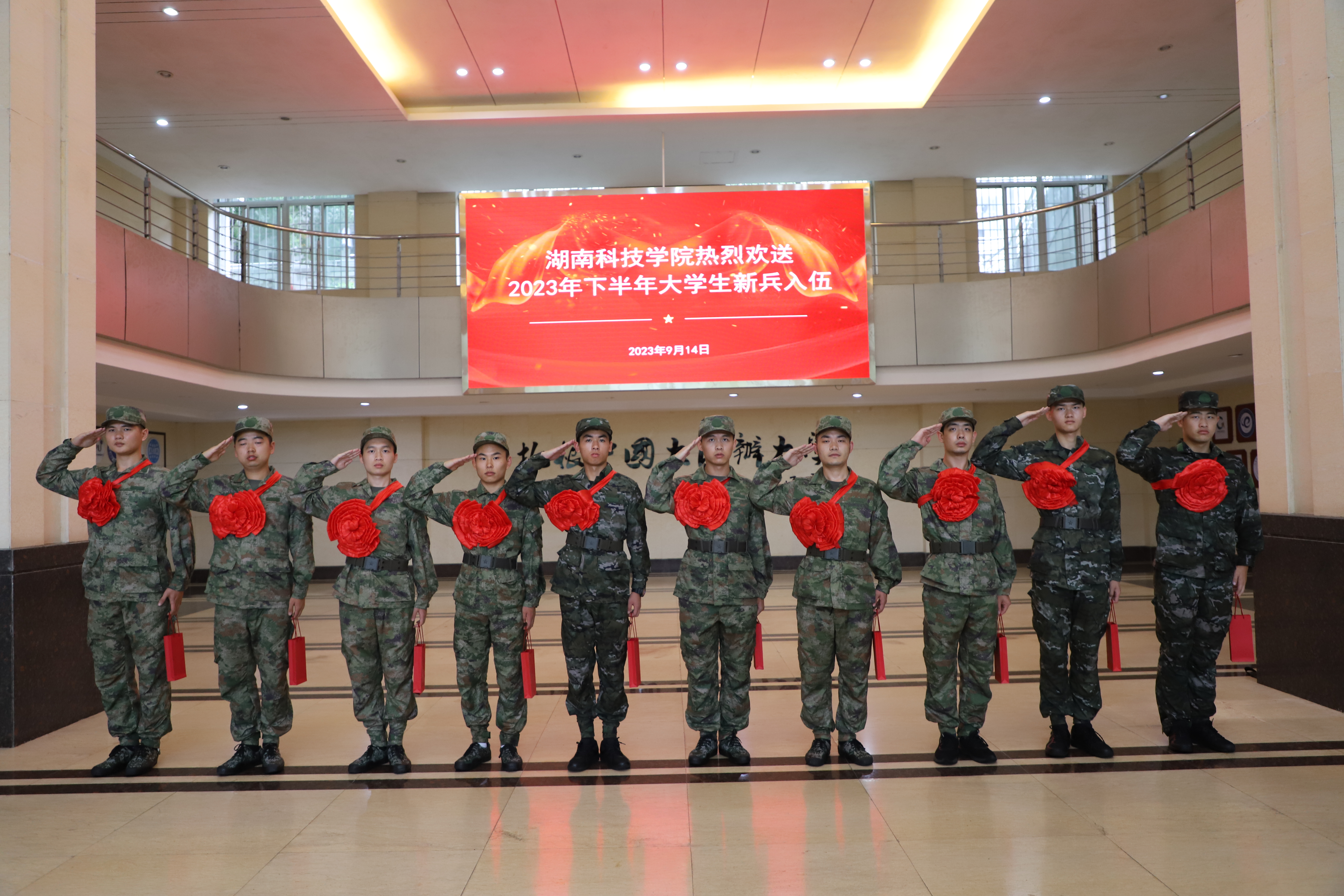 本网讯 9月14日,学校举行2023年大学生应征入伍欢送仪式。党委书记李钢,副校长吴小林为入伍新兵送去祝福,并赠送入伍纪念品。