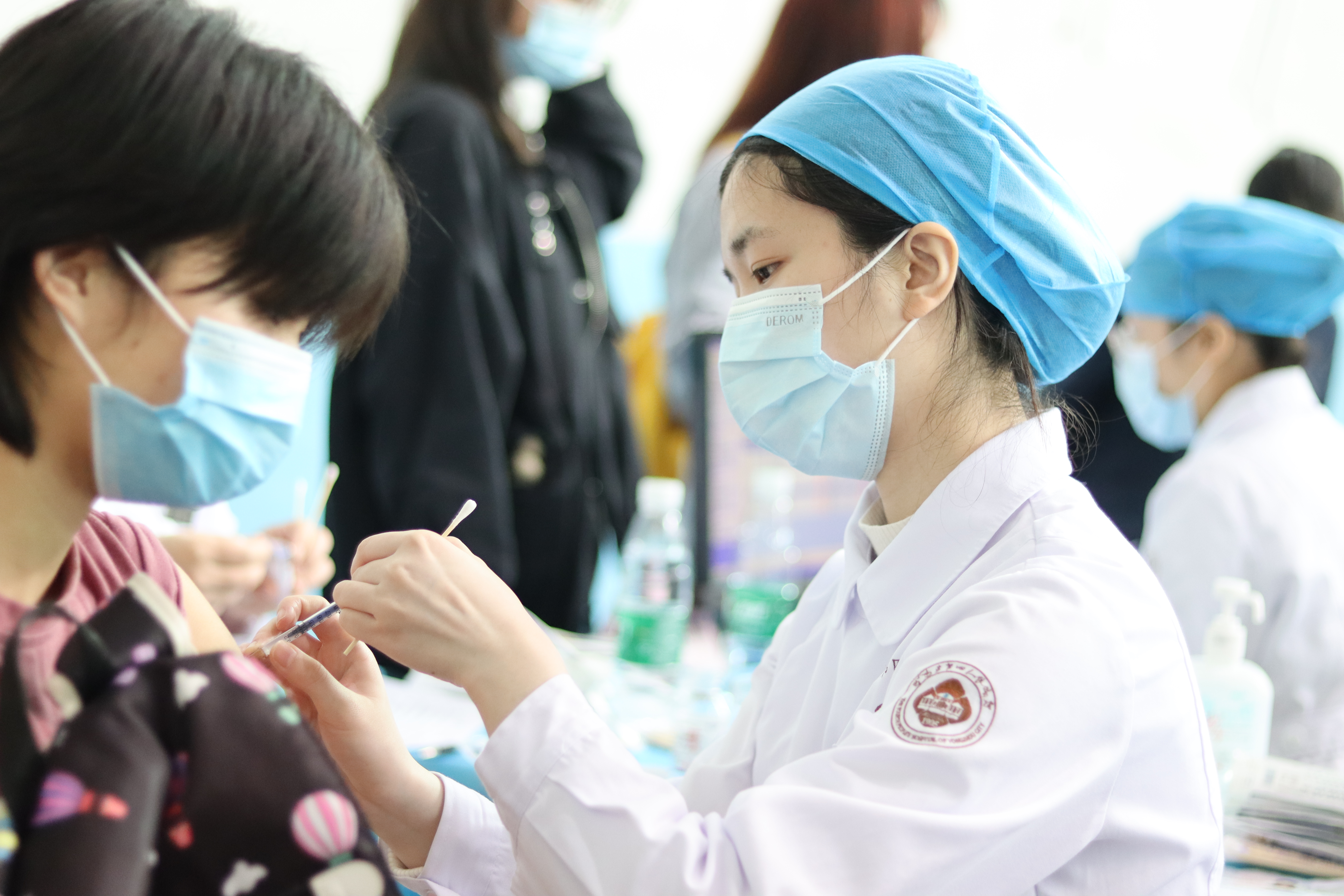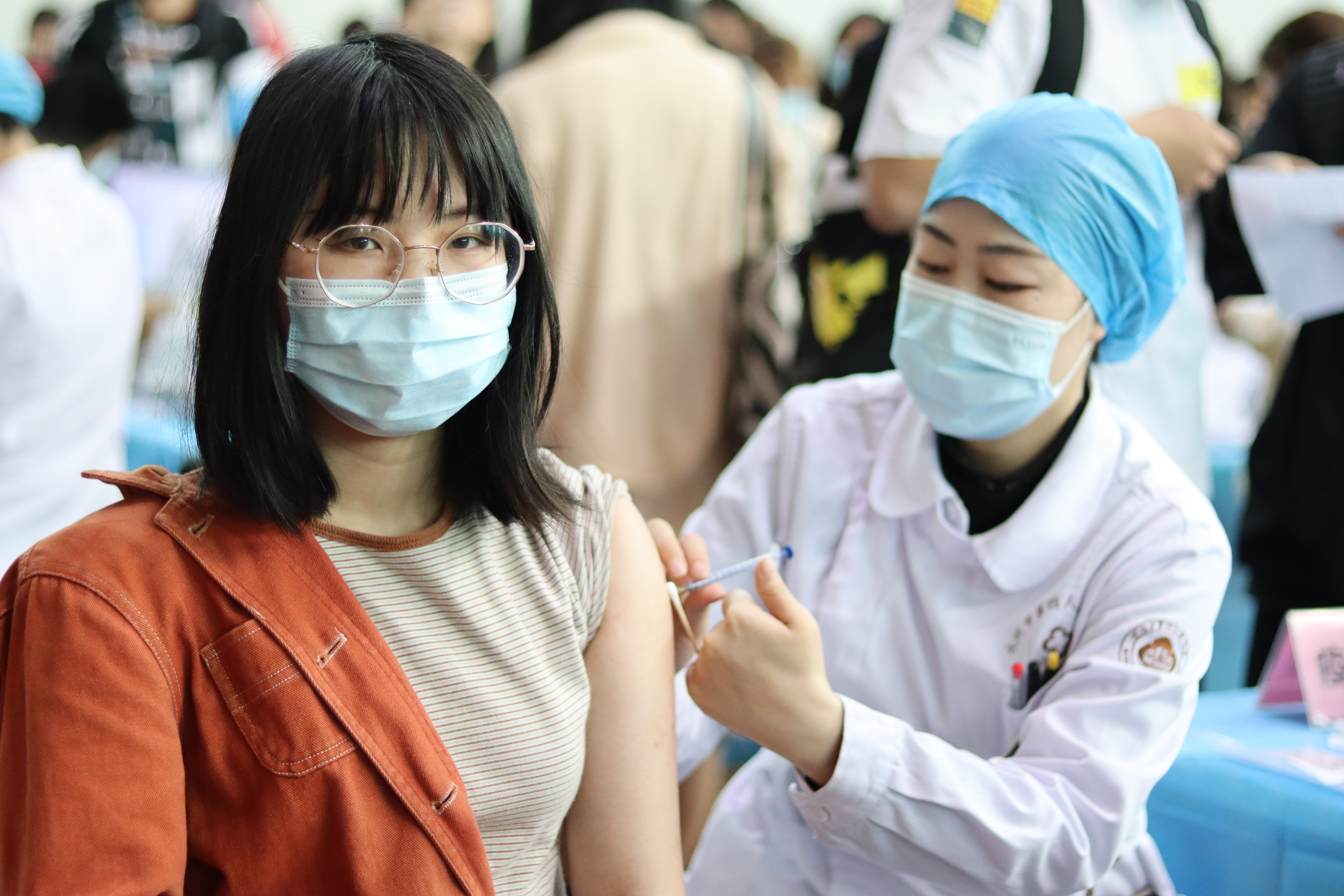 全校师生集中接种新冠疫苗(图)