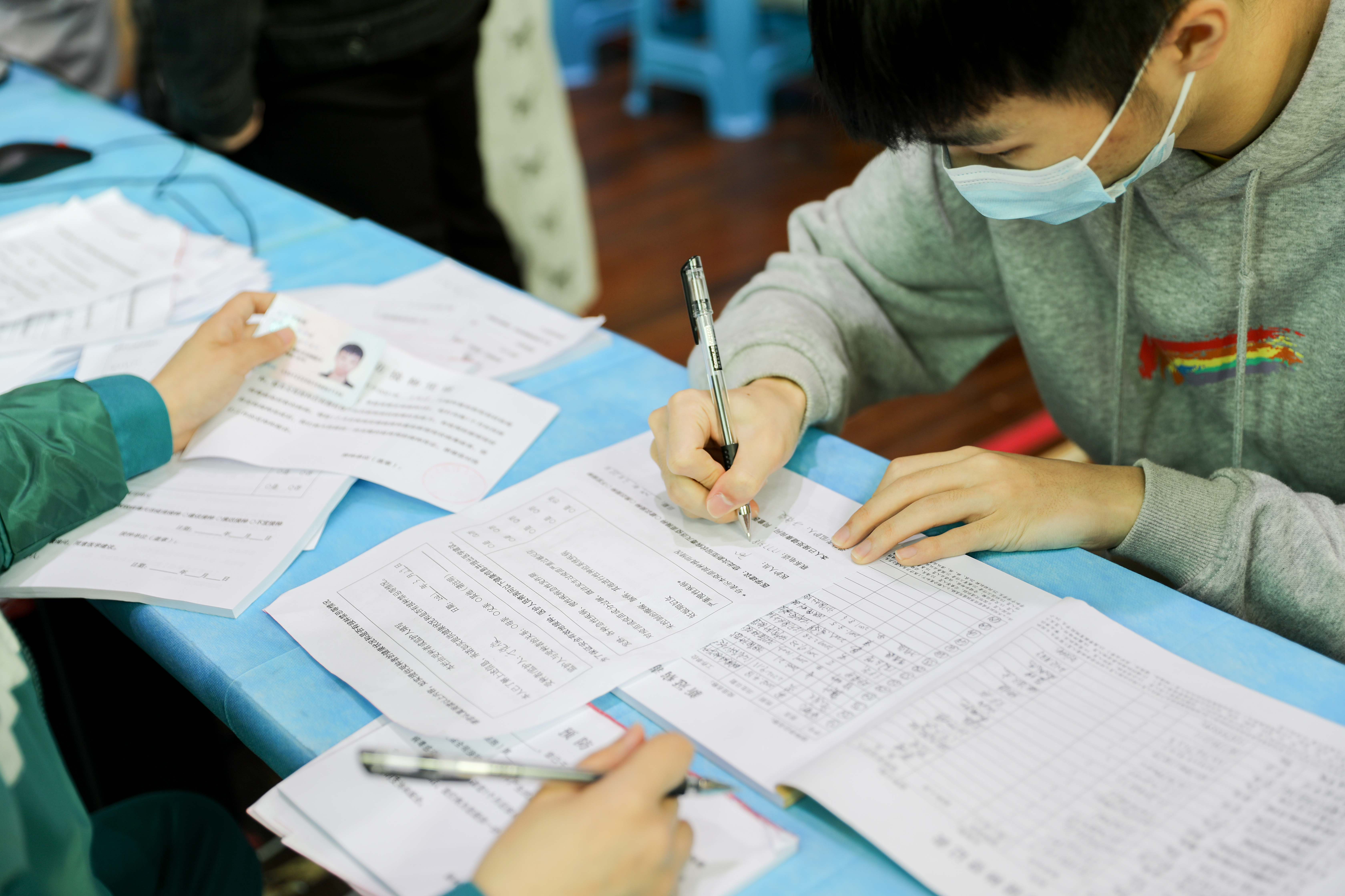 “等候——登记——接种——留观——离场”,疫苗接种现场形成闭环管理,整个疫苗接种流程及防疫工作安全有序。受种师生在志愿者的指引下有序进入候检区,签署知情同意书、登记信息,依次排队接种。完成接种后,师生们遵照医务人员要求,留观30分钟后无不适症状,方可按照规定有序离场。