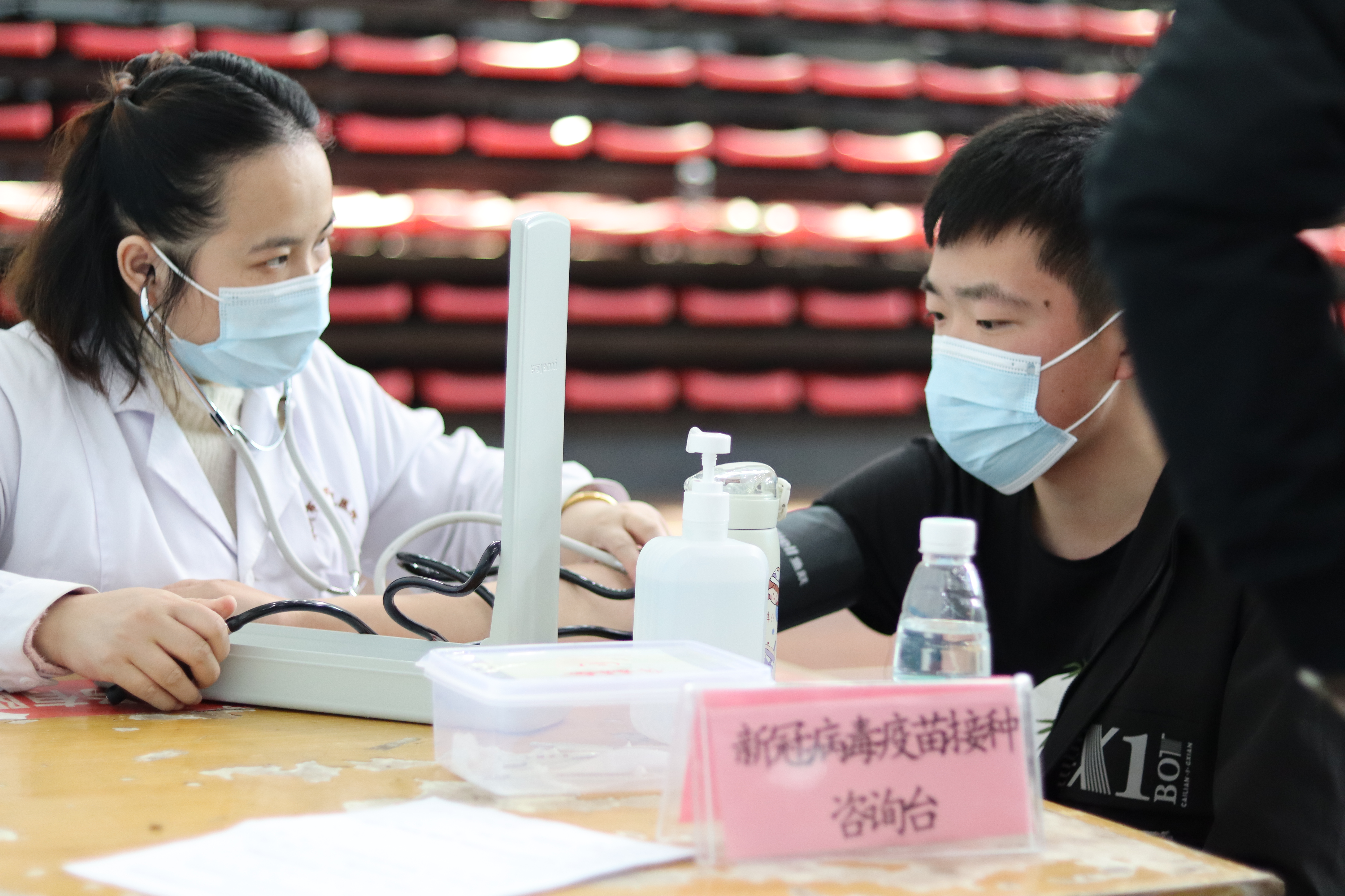 本次接种时间为3月29日—3月31日,学校在体育馆共设置了16个接种台,场馆入口处还专门设置了咨询通道,不少师生前来咨询。“过敏体质能不能接种新冠疫苗?”“有感冒症状能不能接种新冠疫苗?”“患贫血症会不会影响接种?”……医护人员根据个体具体情况逐一给予详细解答。