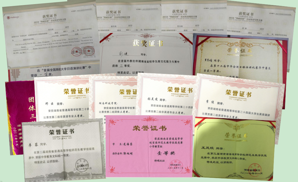 聚焦教育教学改革,专业建设上台阶。坚持以本为本,推进四个回归,深化教育教学改革,加强校企和校地合作,强化应用型人才培养效果,全面提升教育教学质量。“十三五”期间,1门课程被认定为国家级首批一流课程,1门课程被认定为省级一流课程,3门课程被认定为校级一流课程。立项省级教改项目16项、省课程思政项目2项,发表省级教改论文116篇,获省级课堂教学竞赛一等奖3人次、二等奖1人次、三等奖2人次,获校级各类教学竞赛一等奖4人次、二等奖5人次、三等奖6人次,获芙蓉教学名师1名,获省级教学成果奖三等奖1项、校级教学成果奖一等奖1项、二等奖2项、三等奖3项。新增7个英语专业校外实践基地、3个日语专业校外实践基地。被评为2016年度教学工作考核“优秀单位”,英语专业和日语专业被认定为省级一流专业。