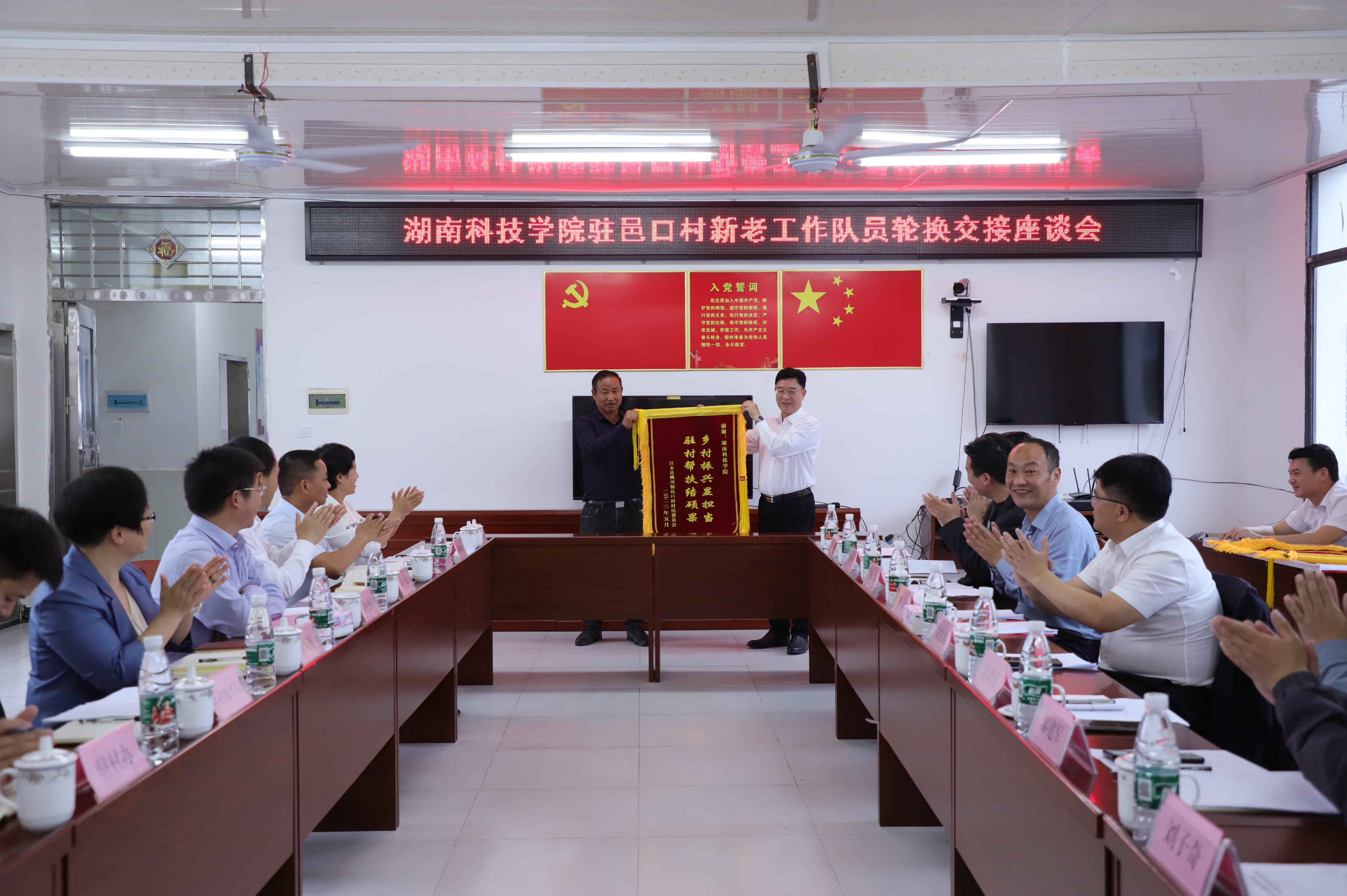 本网讯 5月22日,党委副书记、校长李钢,党委副书记宋宏福,党委委员、组织部部长杨涛将第二轮乡村振兴驻村工作队队员送至江永县桃川镇邑口村,并召开邑口村乡村振兴新老驻村队员交接会议。江永县委书记唐德荣, 县委常委、副县长杨敏, 县委常委、组织部长唐琼艳出席会议。