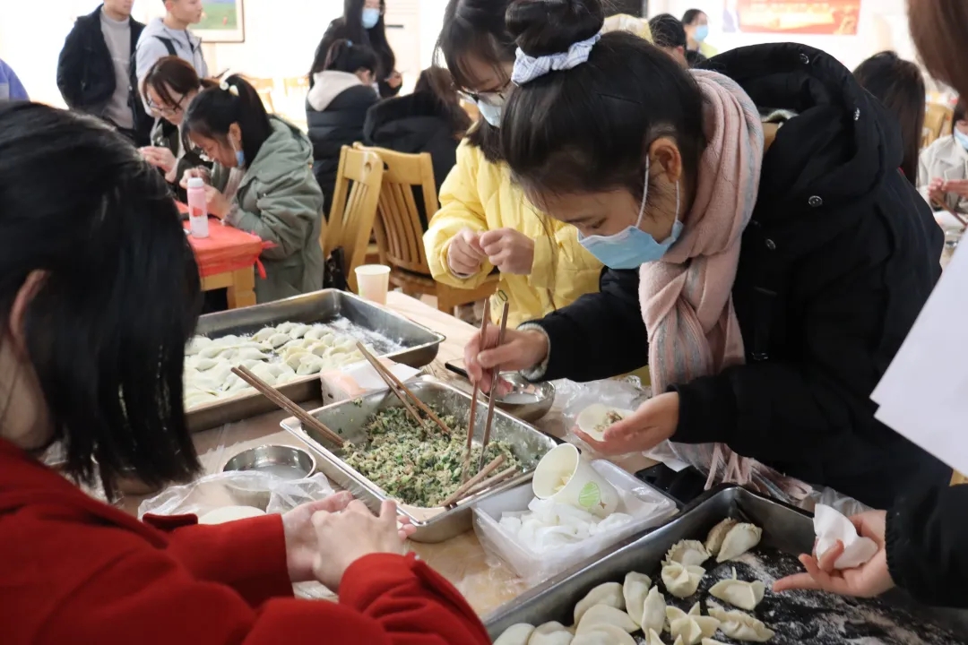 这份暖心饺子和姜汤,由后勤服务总公司和校团委的学生志愿者们参与制作,“吃饺子,成‘骄子’,希望能给学长学姐们带来满满的好运气!”“学习很苦,坚持很酷,加油!”小巧可爱的元宝饺、精巧别致的月牙饺、玲珑饱满的三角饺......大家纷纷使出绝活,将自己的祝福寄于所包的饺子中。
