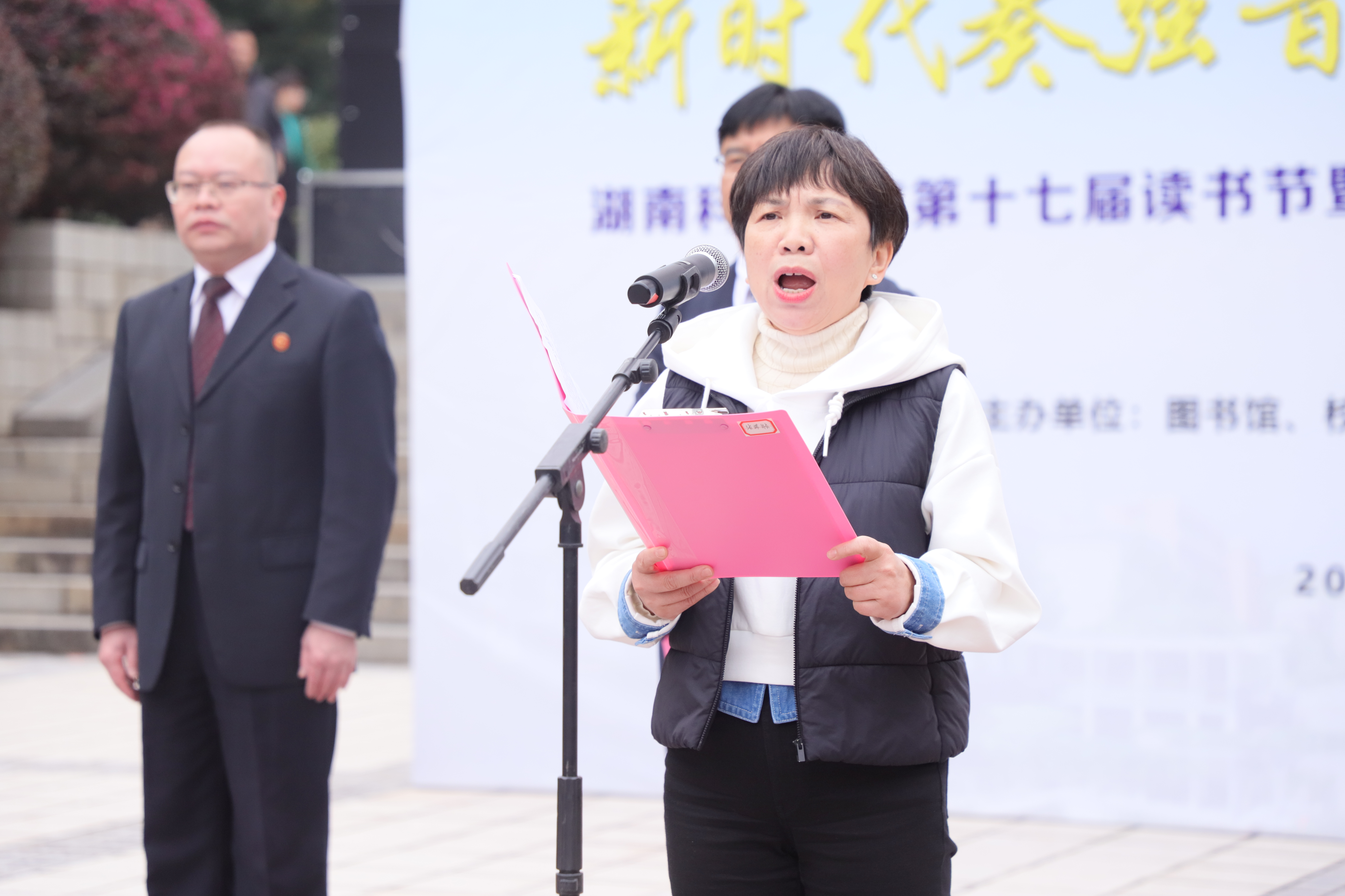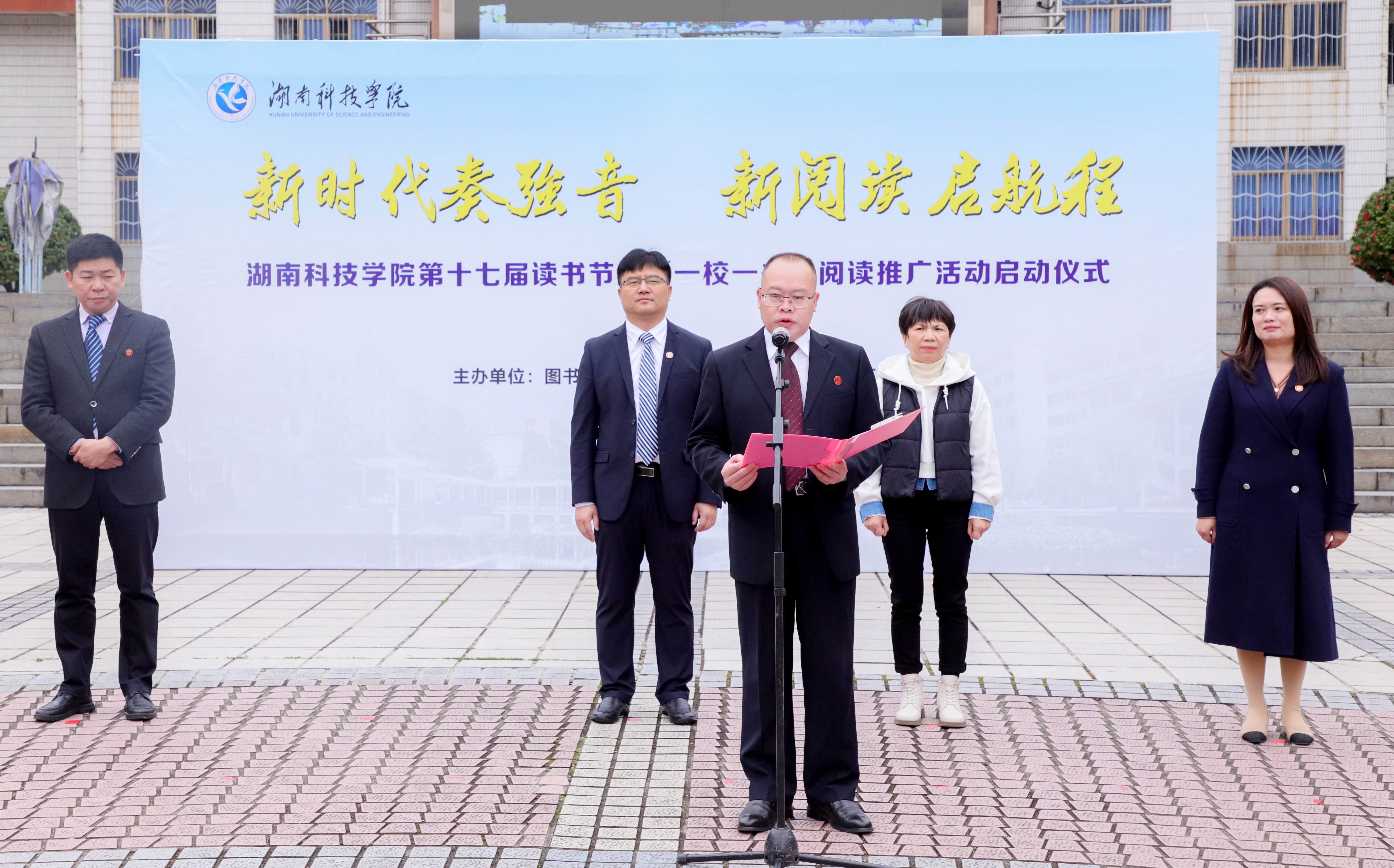 何海在致辞中表示,在这块潇湘汇流的神奇土地,传承历史文脉是义不容辞的责任,弘扬优秀文化是必须肩负的使命。全体师生要以读书活动为契机,在校园迅速掀起爱读书、读好书、善读书的热潮,以阅读树理想、养正气、启智慧、明道理,坚定不移听党话、跟党走,怀抱梦想又脚踏实地,敢想敢为又善作善成,为全面建设社会主义现代化国家、全面推进中华民族伟大复兴而努力奋斗。