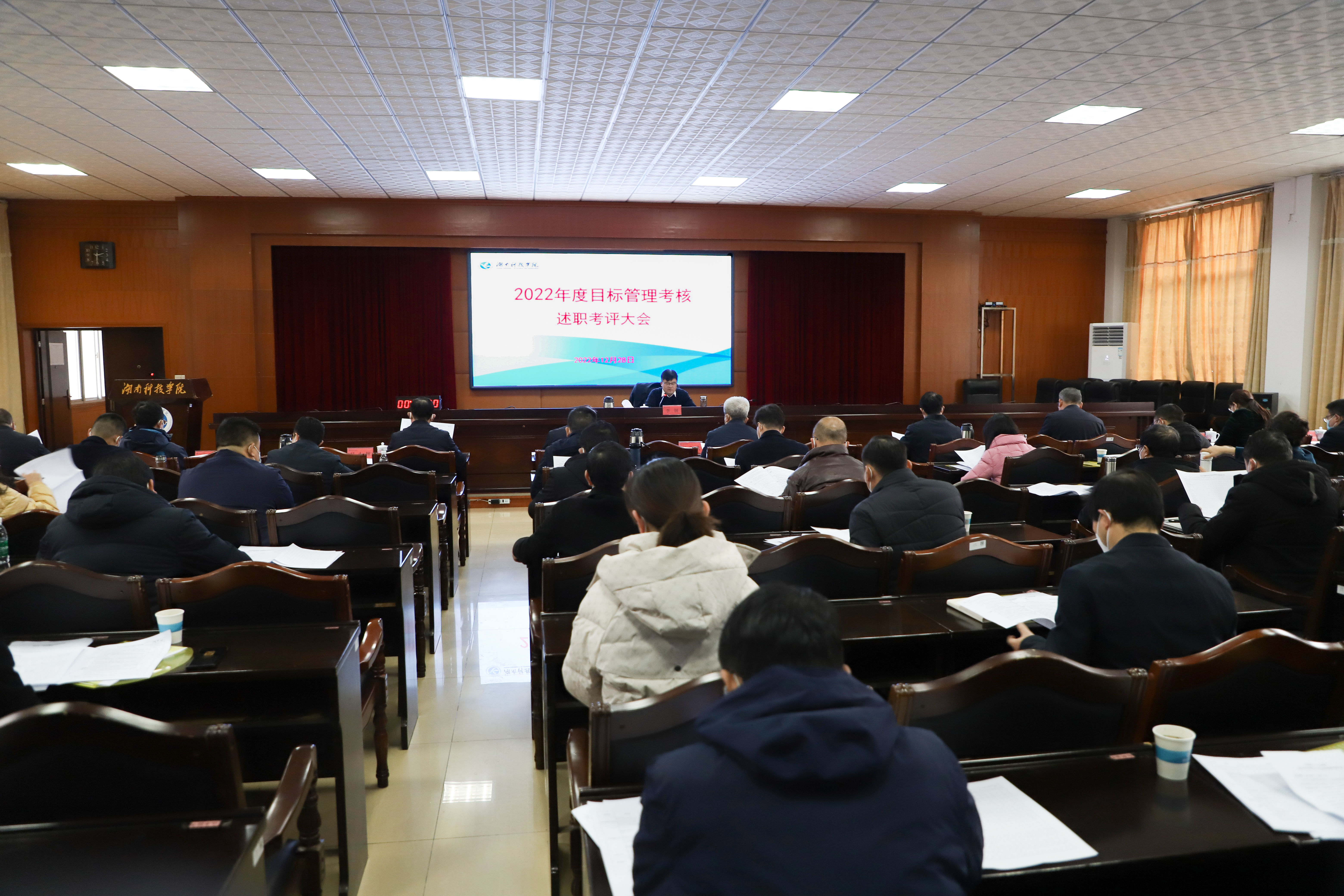 本网讯 12月28日下午,学校在行政楼801会议室召开2022年度二级单位目标管理考核述职考评会。全体校领导和中层正职(含主持工作)参加并担任评委现场打分。考评会由校长李钢主持。