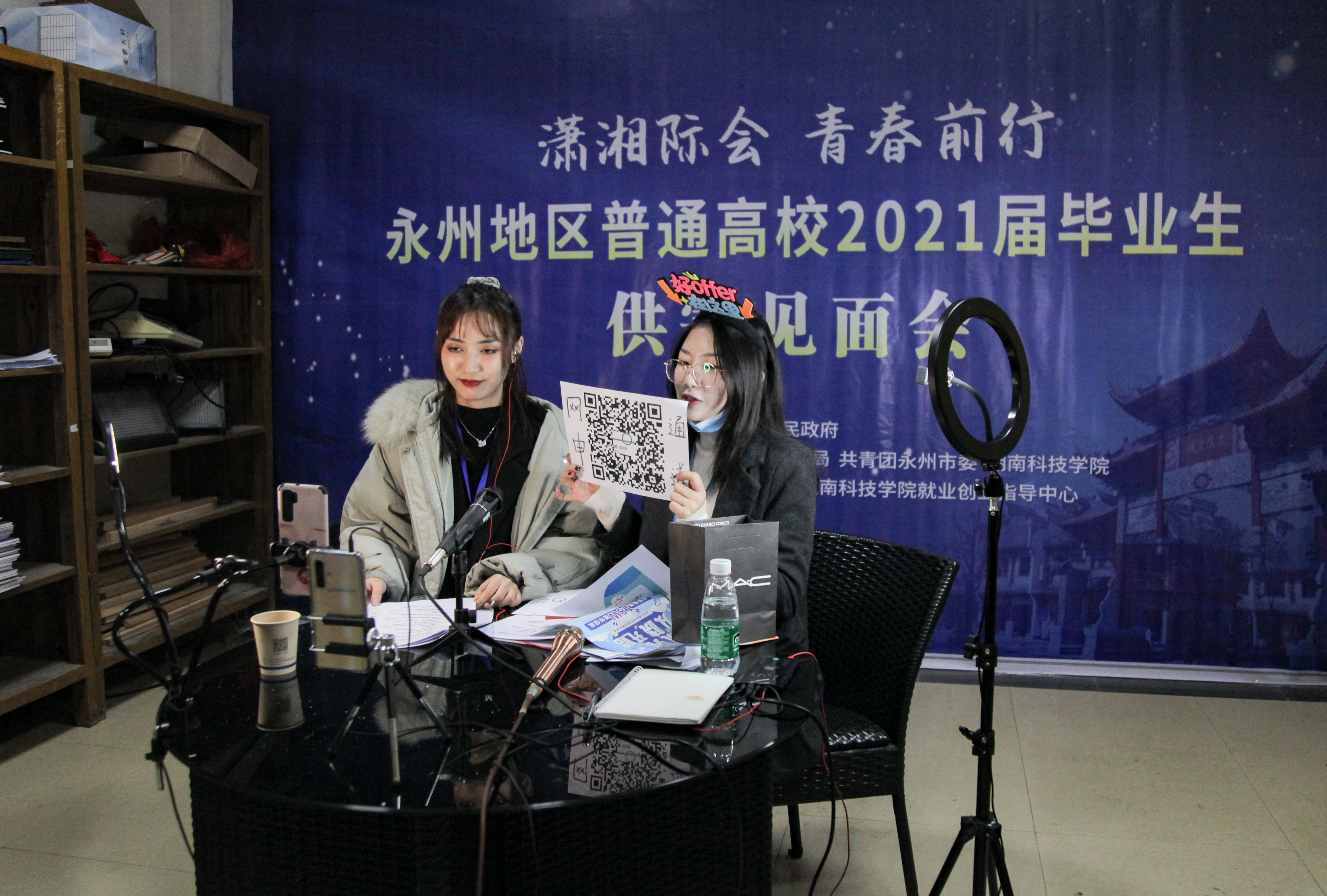 “职位前景如何?”“公司岗位薪资有多少?”……直播带“职”是今年招聘会上的一大亮点,直播间内互动频频,短短一个小时直播间人数达7700余人,数十家用人单位负责人化身主播亲自“上擂台”直播带“职”。同时,活动现场设立了毕业生就业创业政策宣传咨询处,提供职业指导、技能培训、创业扶持、见习就业、法律援助等多种政策咨询服务。此外,为确保供需见面会安全有序进行,学校提前对活动现场进行了全面消毒,在会场入口处安排了工作人员为参会人员测量体温并发放口罩。