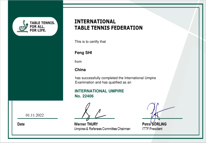 近日,体育学院教师石峰收到国际乒联颁发的乒乓球国际级裁判证书,这是vwin德赢第一个体育项目的国际级裁判员,也是永州第一位乒乓球国际裁判。