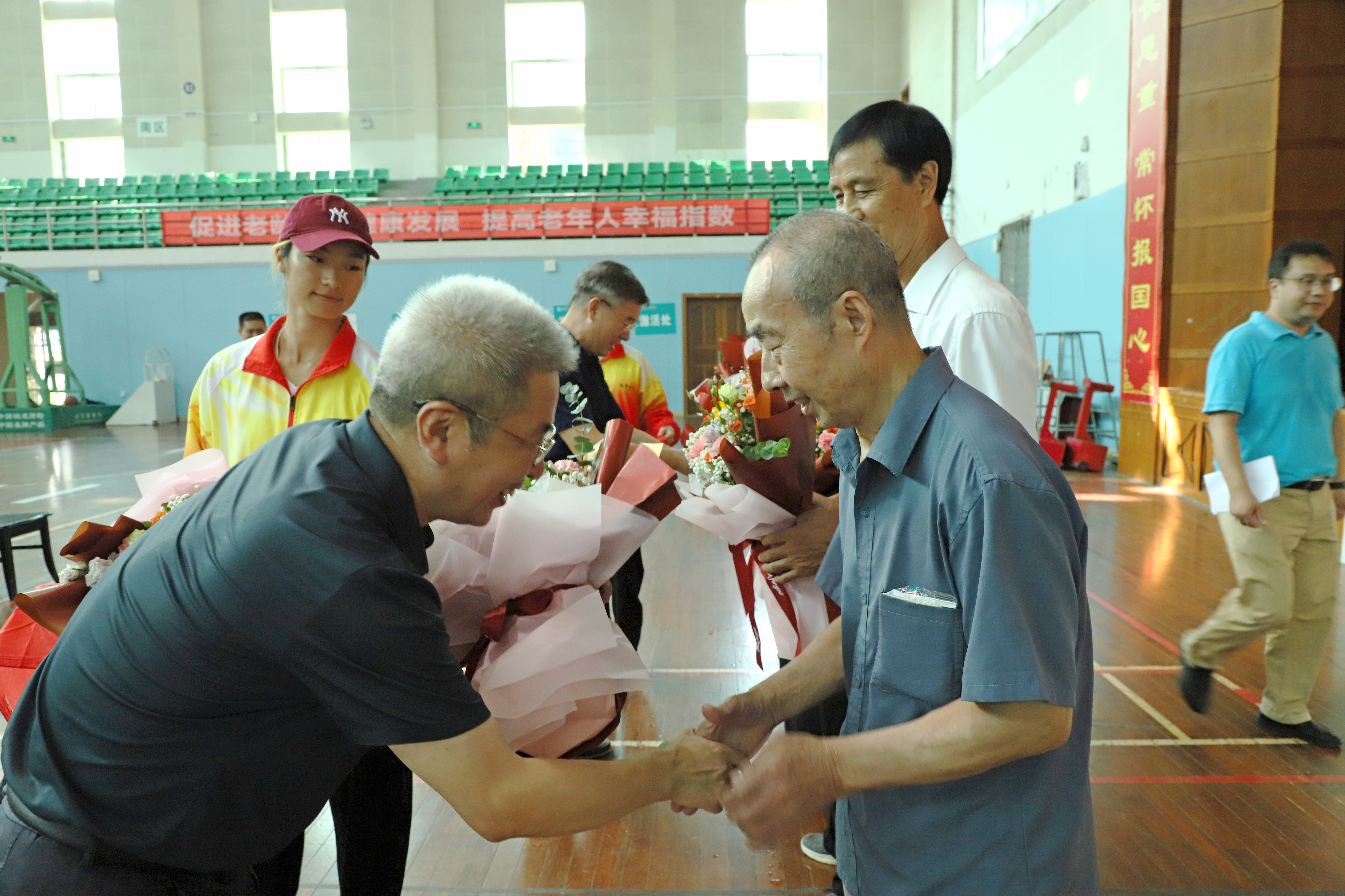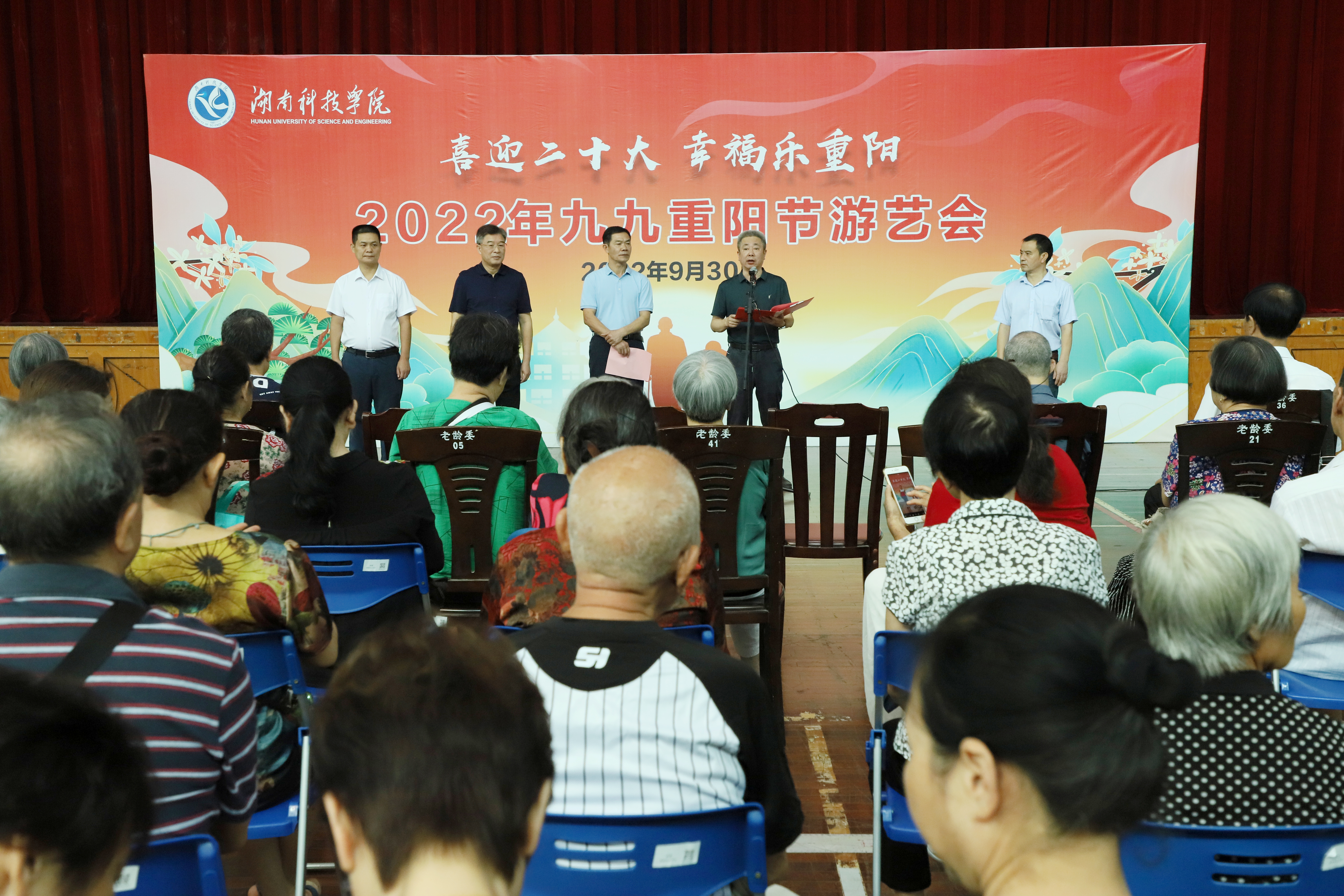 本网讯 9月30日,学校在体育馆举行“喜迎二十大 幸福乐重阳”游艺会。党委书记曾宝成,党委副书记宋宏福,党委委员、副校长吴小林来到活动现场,为老同志们送上诚挚的祝福。