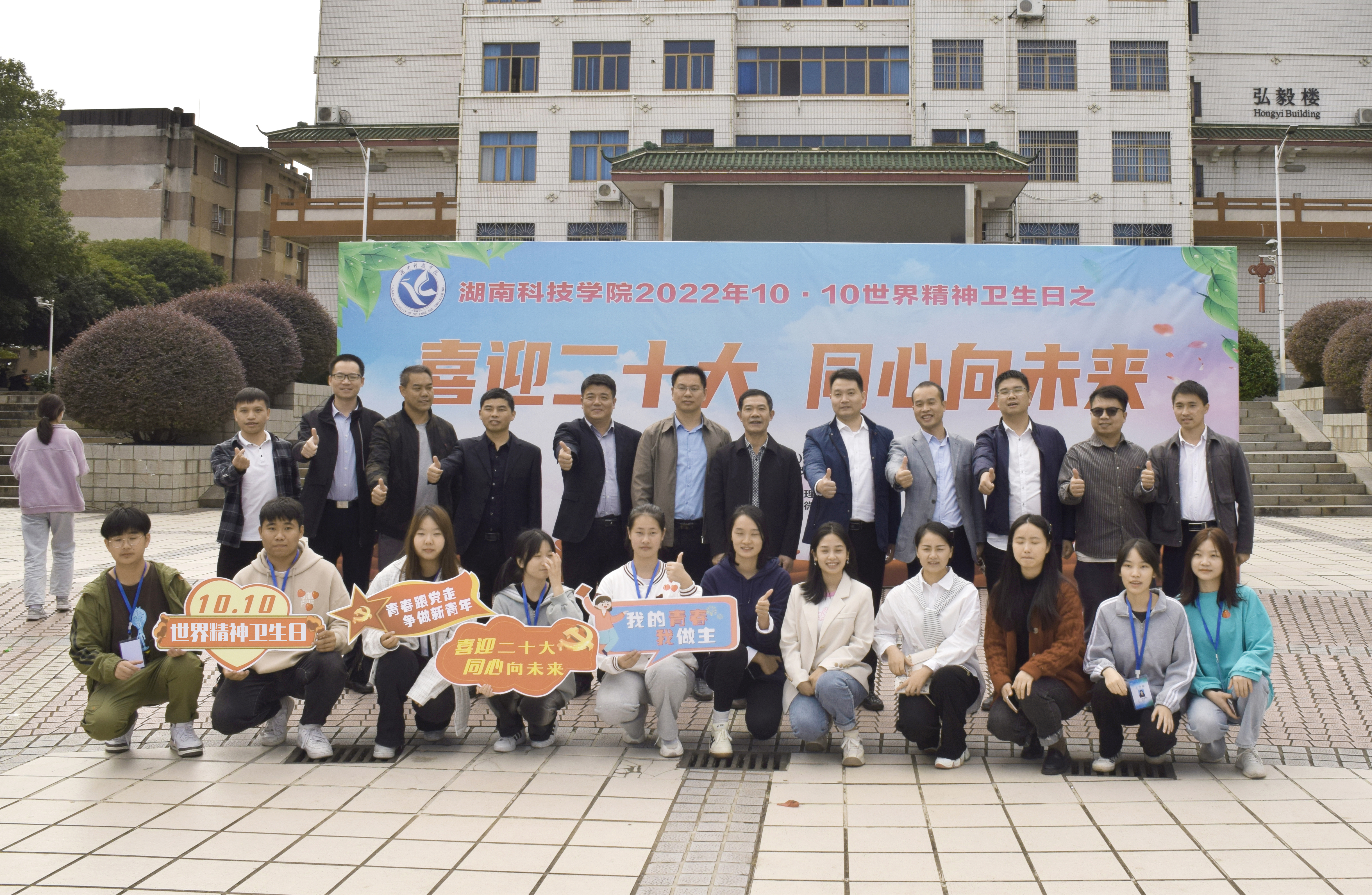 本网讯 10月10日上午,学校在文化广场举办世界精神卫生日之“ 喜迎二十大 同心向未来 ”活动。校党委委员、副校长吴小林,学工部、团委及各教学学院相关负责人参加活动。