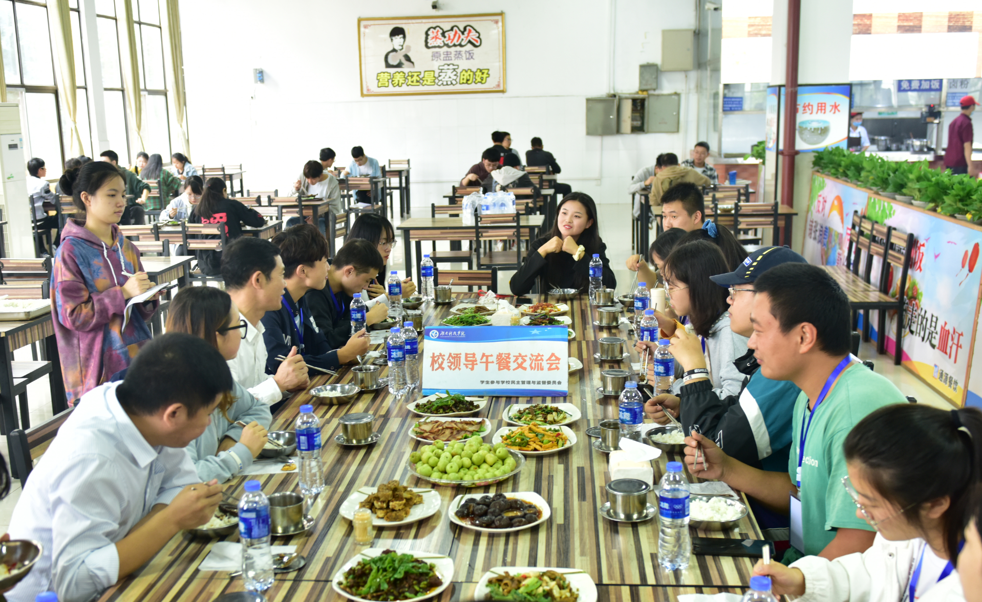 交流过程中,吴小林、后勤服务总公司负责人还就同学们比较关心的餐饮及生活服务相关问题给予了具体的解答和处理。